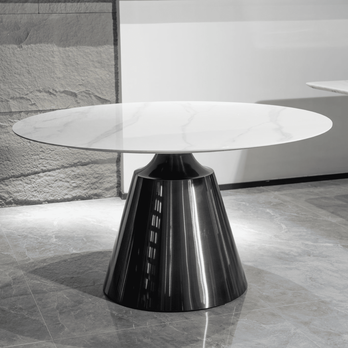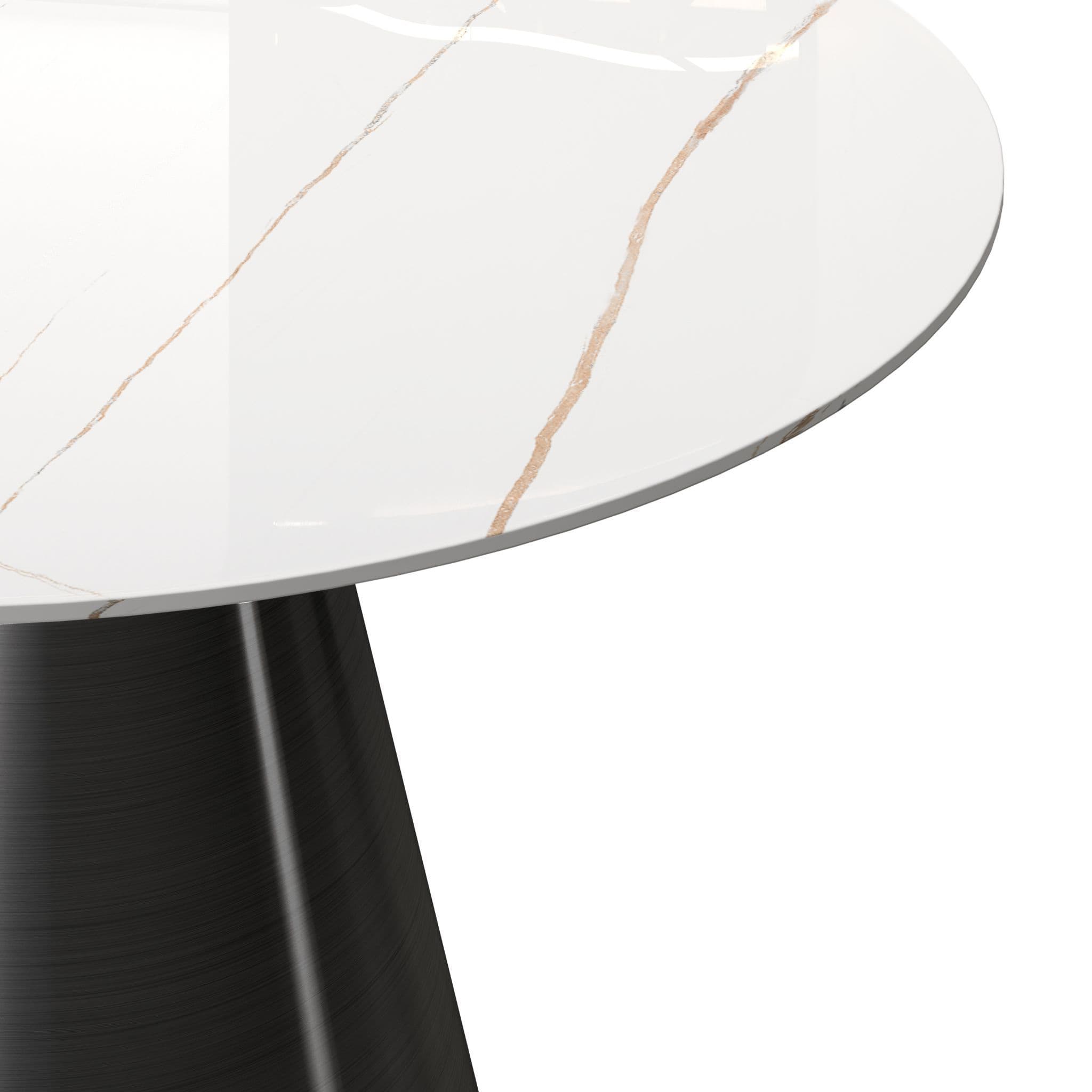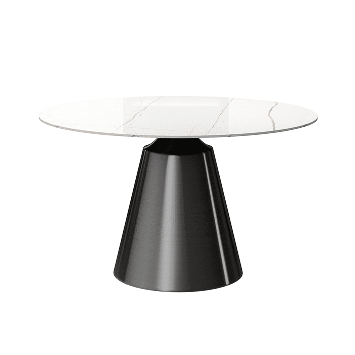 The Toby dining table is a beautiful addition to any dining room The white sintered stone top has a marble look that creates an elegant atmosphere The black metal pedestal base evokes industrial strength and power Please note the net weight for this table is 95kg As the table size exceeds the pallet limitation the number 150kg is used to help the system make the right charge for the oversized pallet service.