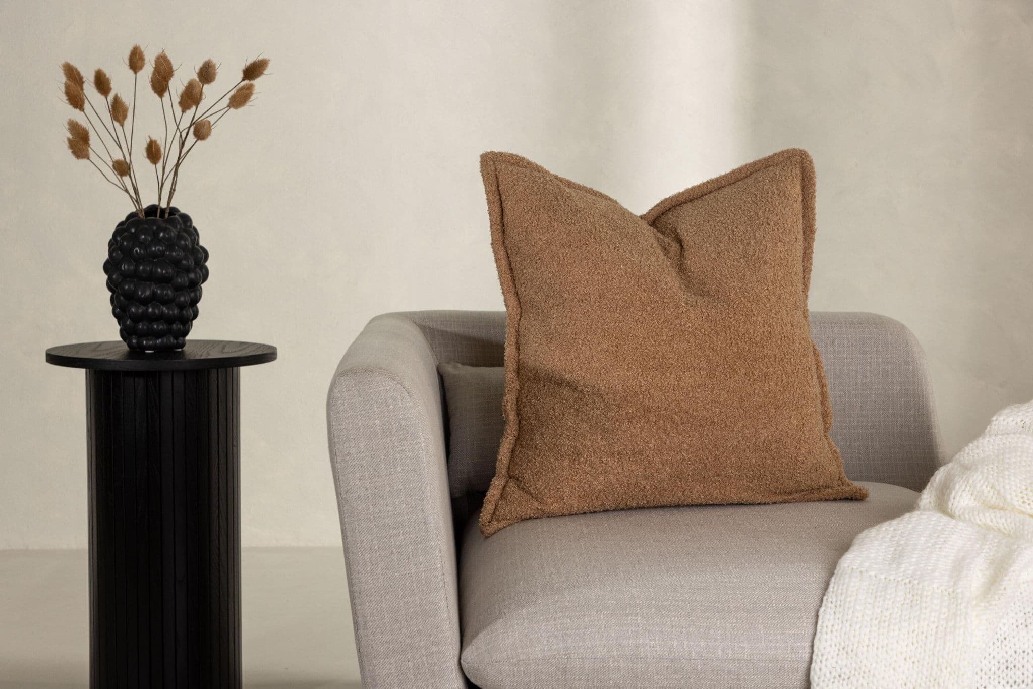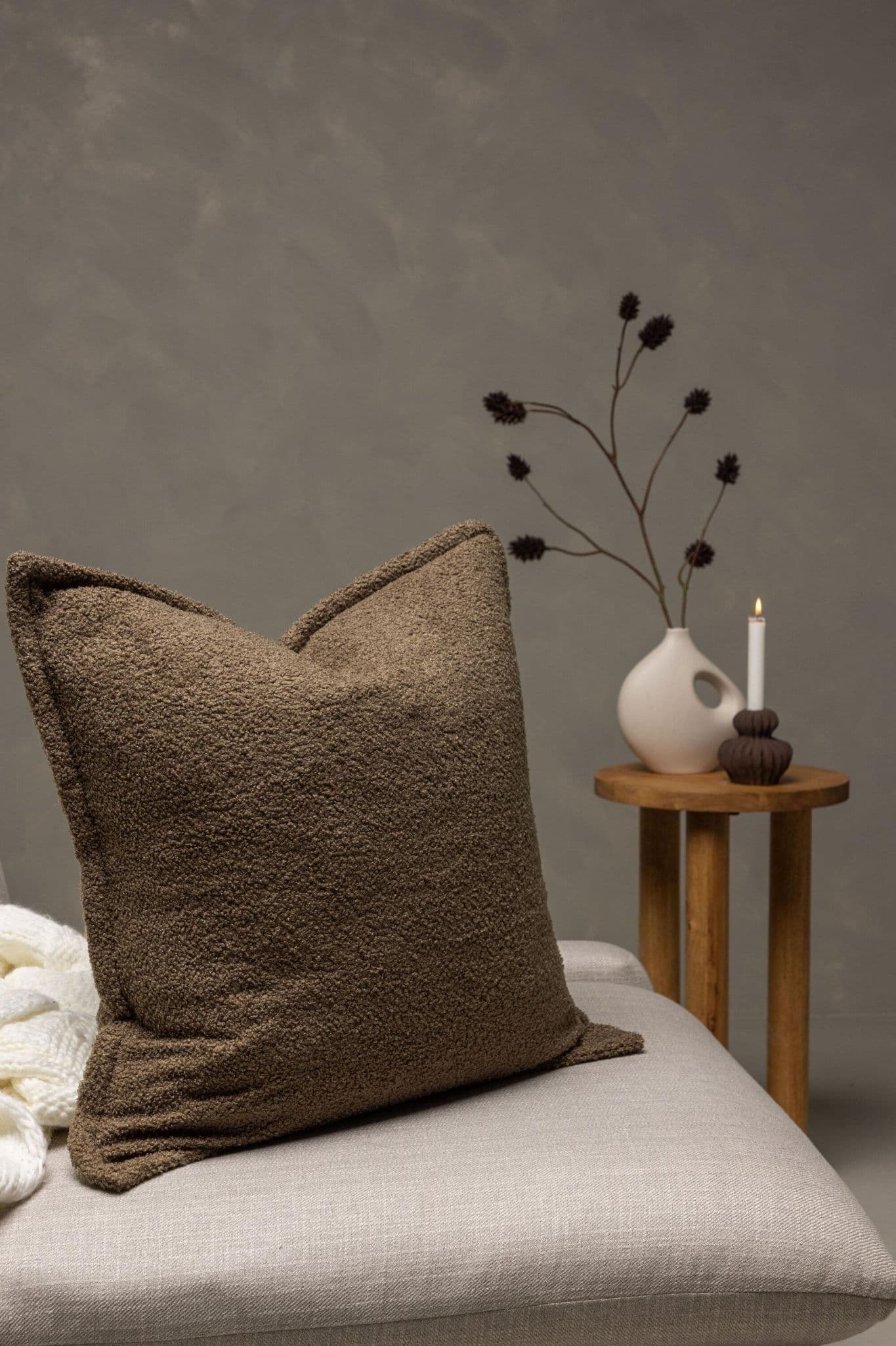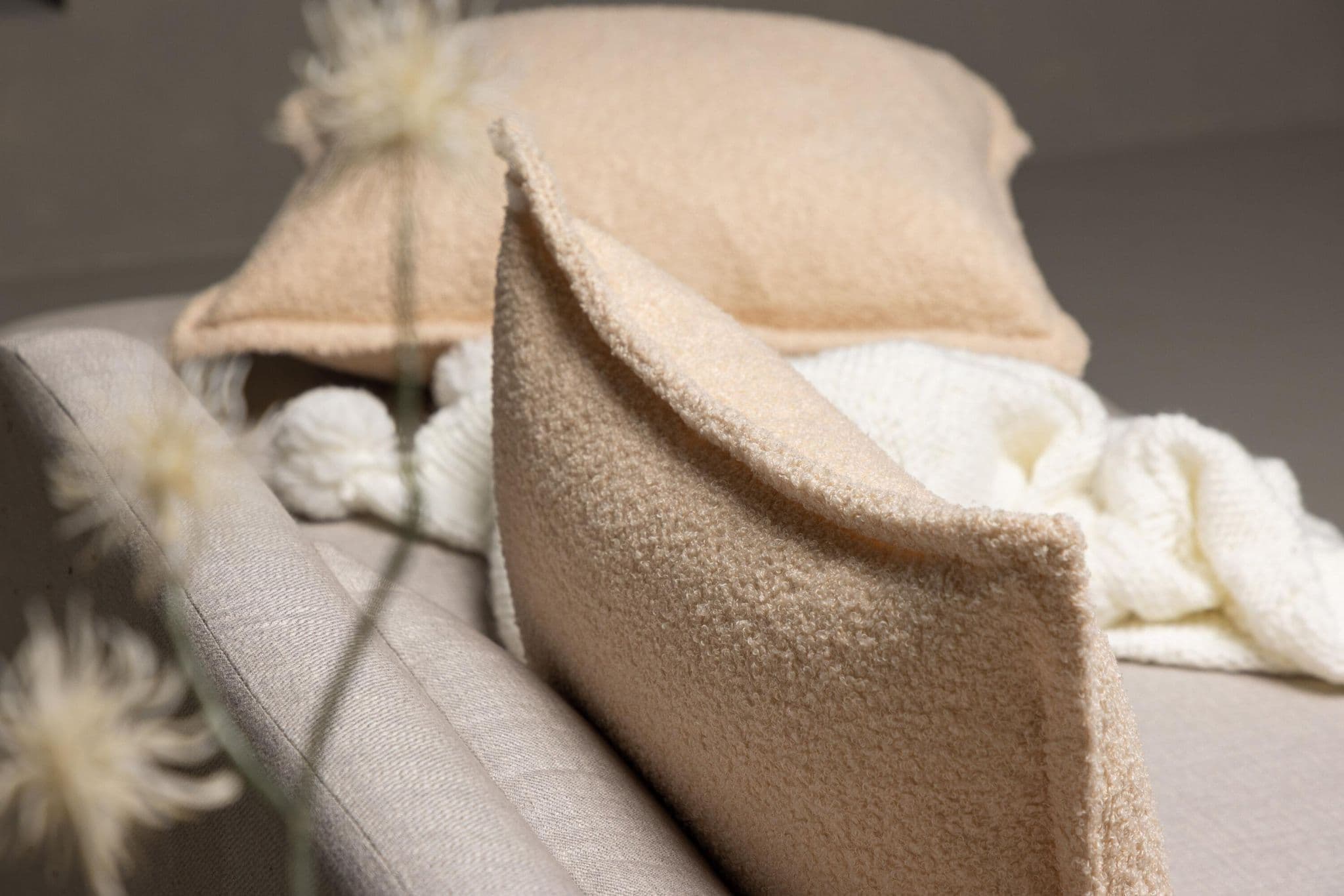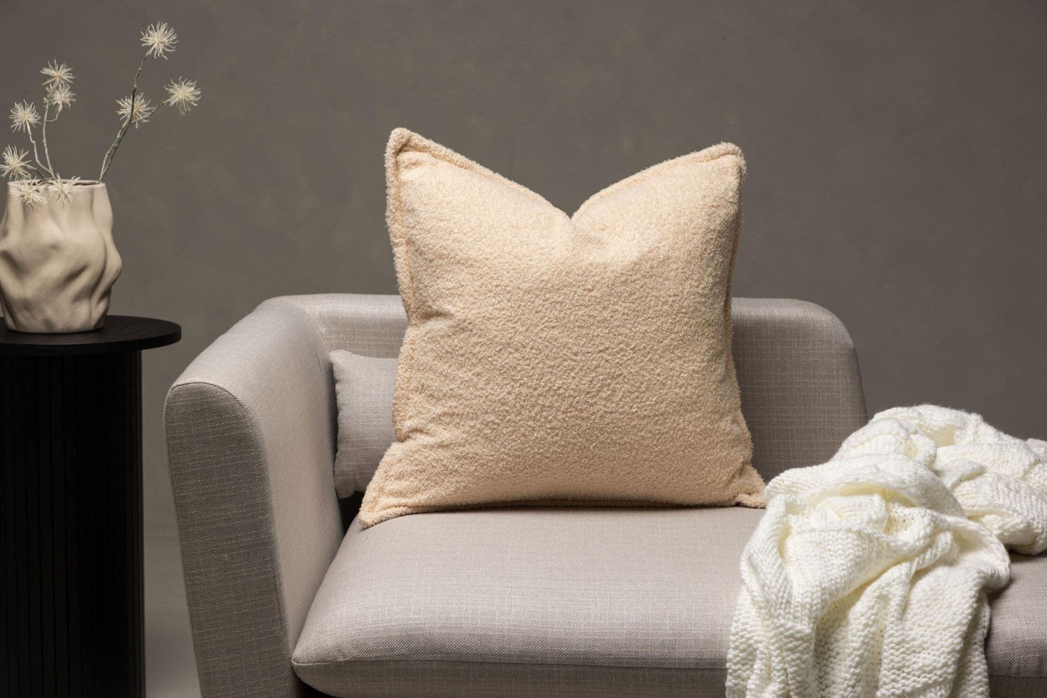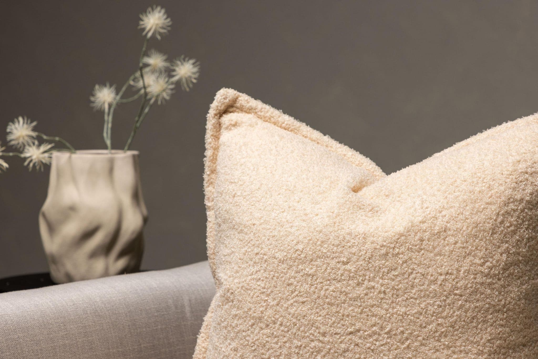 Pillow case with soft and furry teddy feel in polyester fabric, from our popular pillow series Tuva! This pillow case comes in different sizes and colors, all to best suit your interior style. Here in a champanine colored white shade that easily blends into the modern home. The pillow case has a discreet zipper on the back and a passpoal edge in the same fabric. A trend – proof pillow that gives your sofa or bed a nice lift!