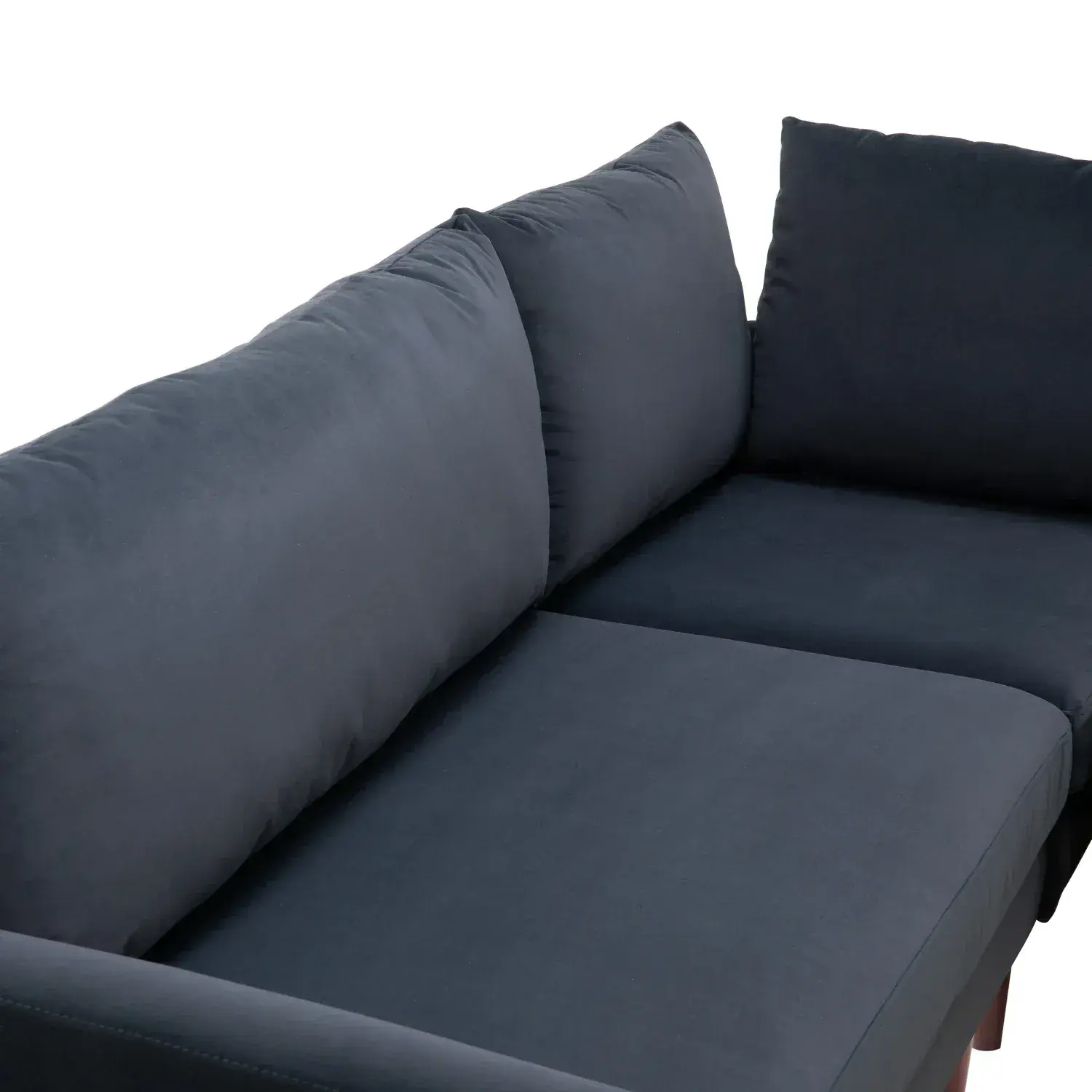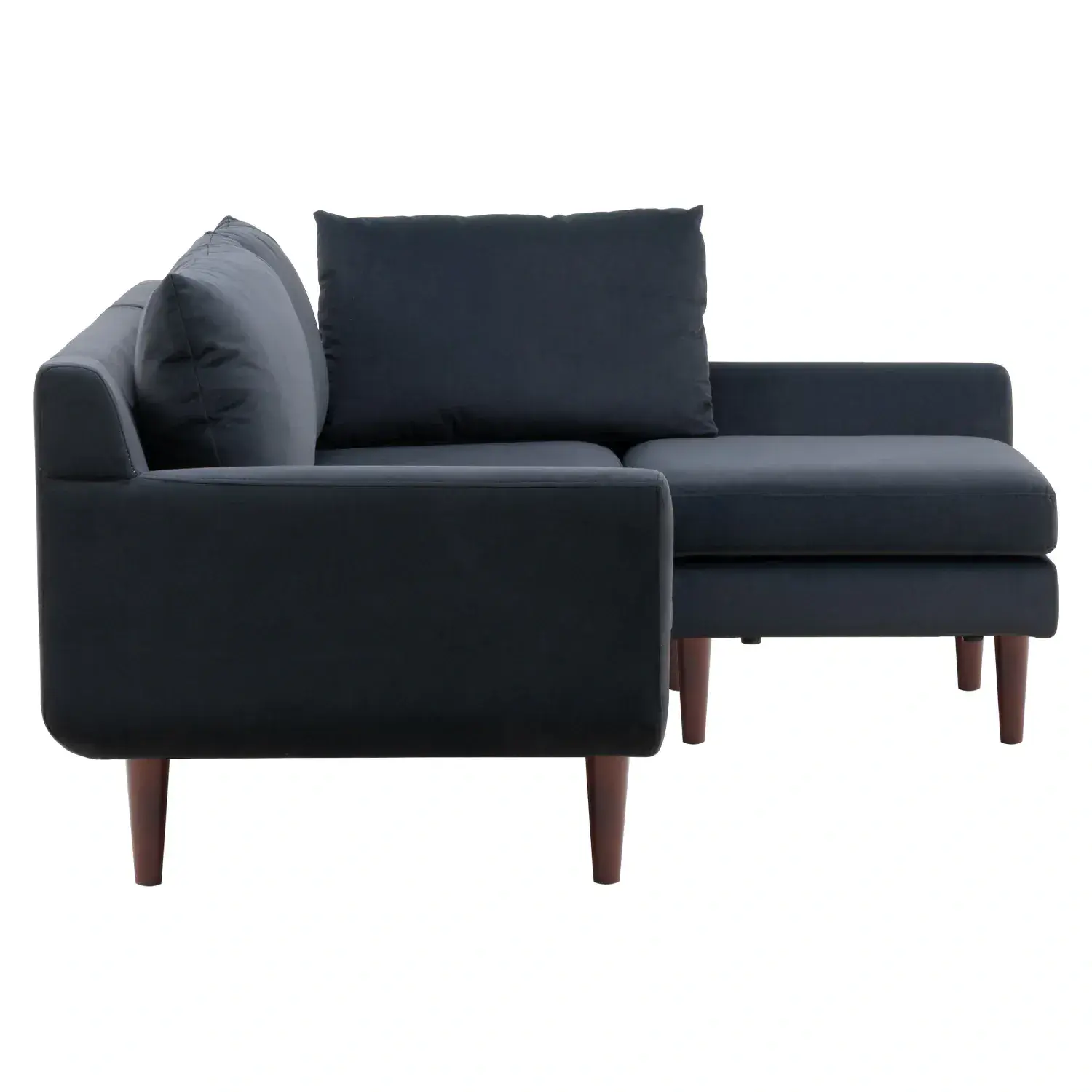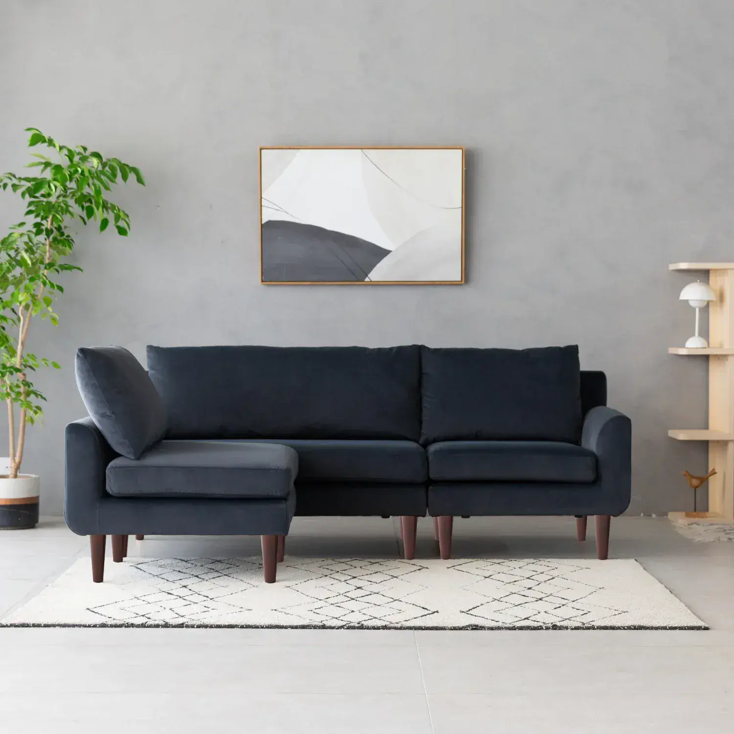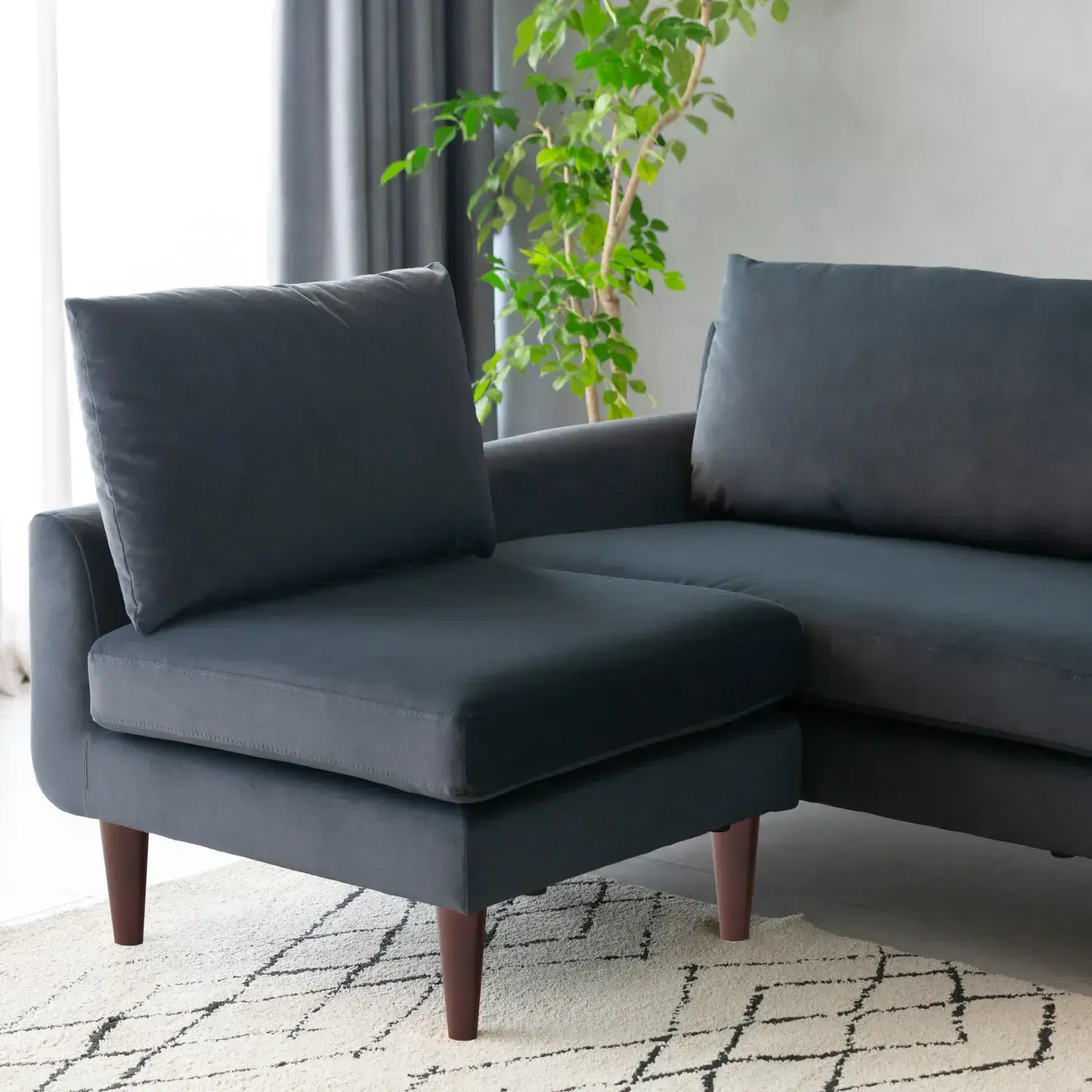 The Vega Dark Grey Charcoal Velvet Corner Sofa is a unique piece that offers incredible flexibility It can be freely arranged as a Right or Left L shape perfect to meet the needs of any room Further to this it can also serve as a freestanding ocassional chair Upholstered in the dark grey velvet the Vega is a luxurious centerpiece that also delivers a delightfully tactile experience The combination of a sturdy durable frame and bold dark grey charcoal colour draws the eye and invites you to snuggle in Be enveloped in subtle glamour and unparalleled comfort Experience an utterly cozy sofa with limitless arrangement potential For those seeking a classically sophisticated statement piece the Vega is also available in a Navy Velvet Modular design allows for limitless arrangements Frame crafted with highly durable solid Eucalyptus wood Robust metal feet that fully supports all corners Foam fibre filled seats and back cushionsli Generous dimensions for a cozy lie in Simple to assemble Just attach the legs and arrange as desired Stunning dark grey charcoal linen 1 Year Warranty Overall Height Top to Bottom 74cm Overall Width Side to Side 193cm Overall Depth Front to Back 138cm Seat Height Floor to Sea 42cm Seat Width Side to Side 150cm Seat Depth Front to Back 49101cm Back Height Seat to Top of Back 32cm Arm Height Floor to Arm 52cm Leg Height Top to Bottom 17cm Overall Product Weight 515kg.