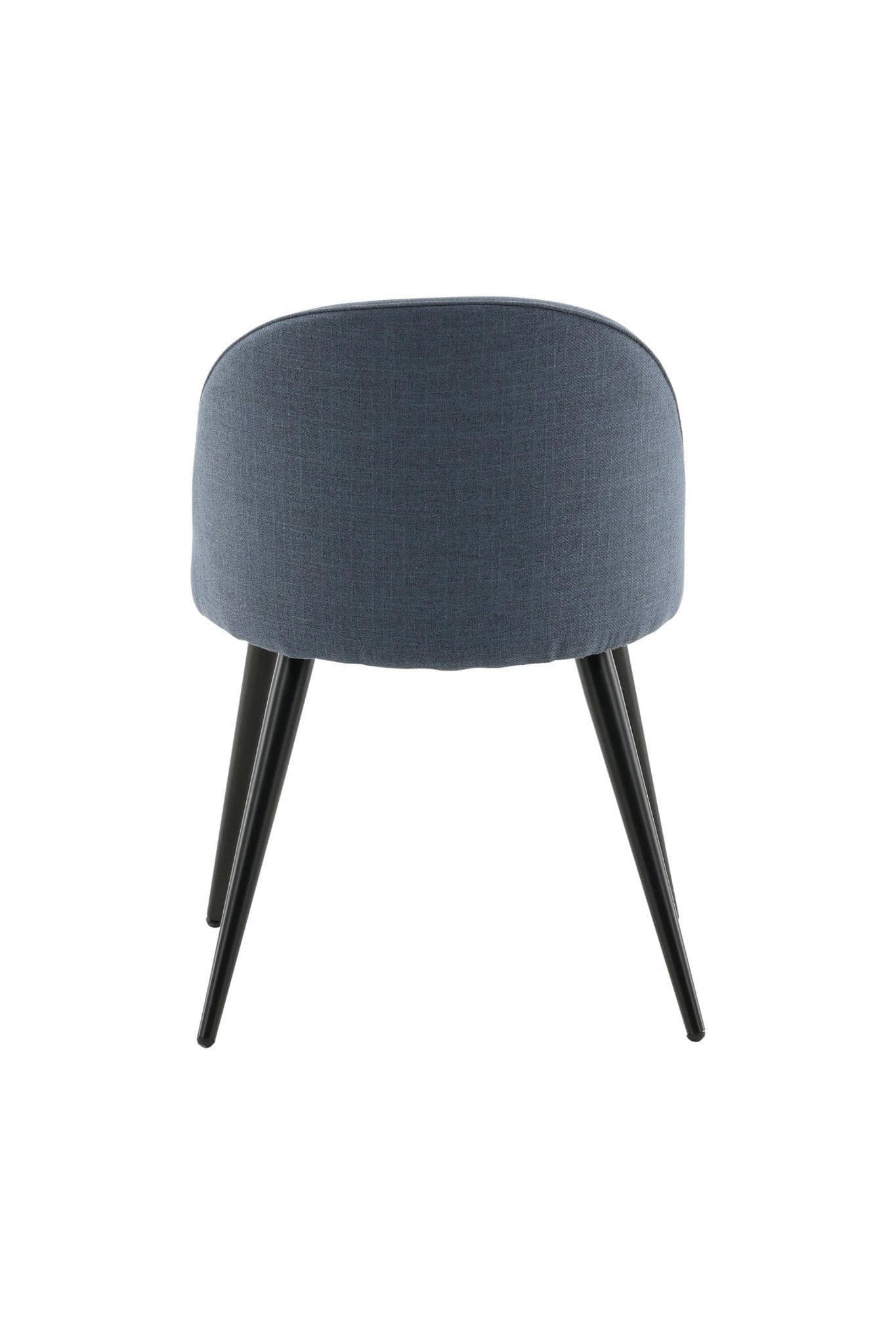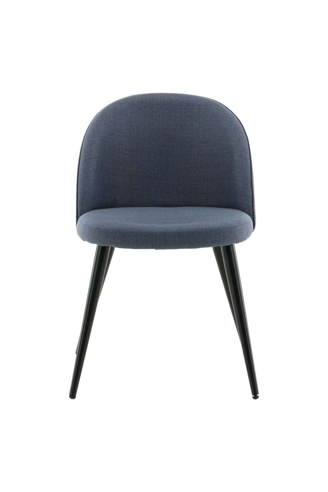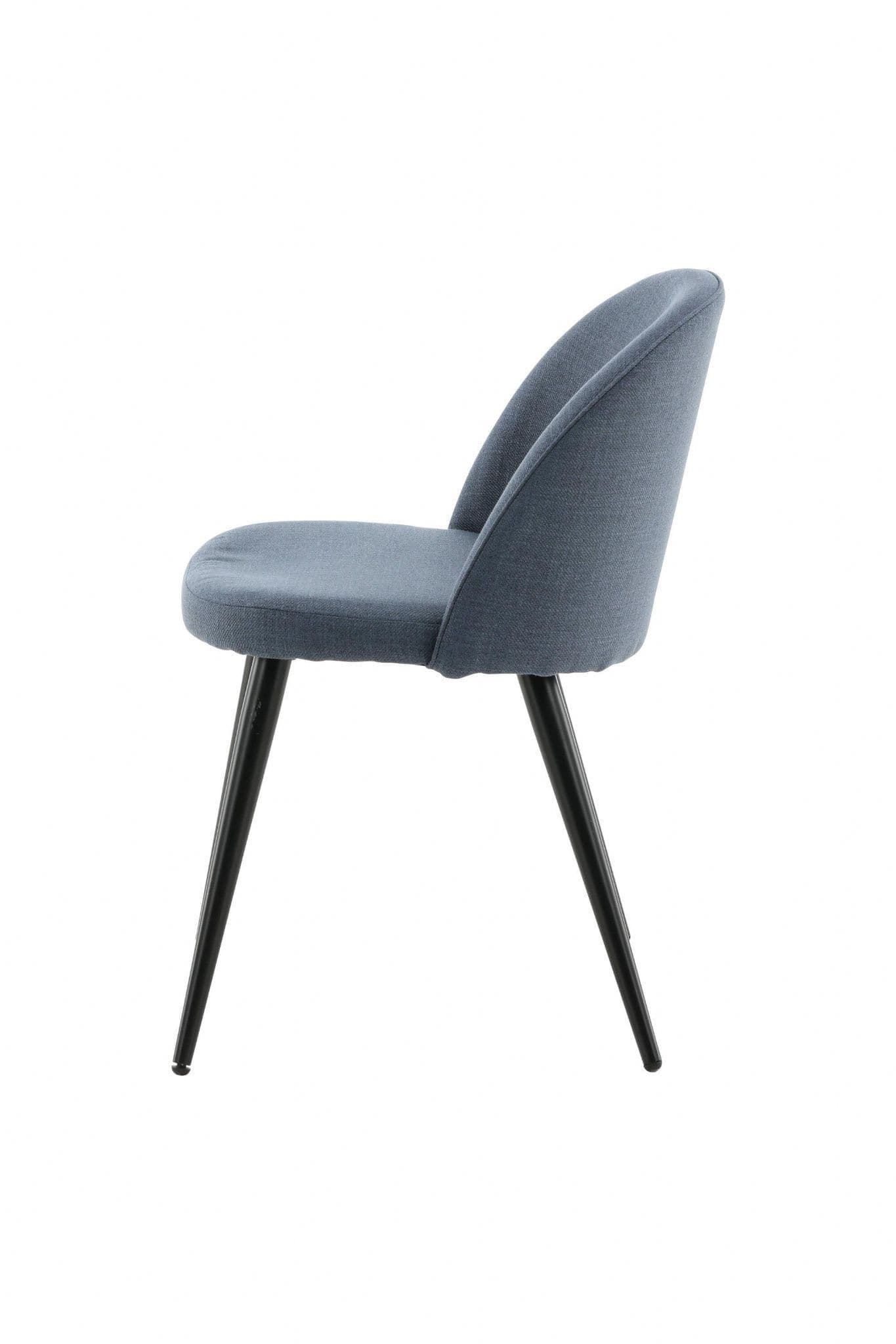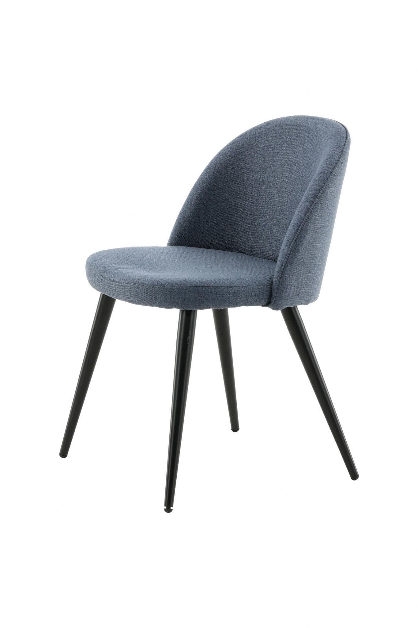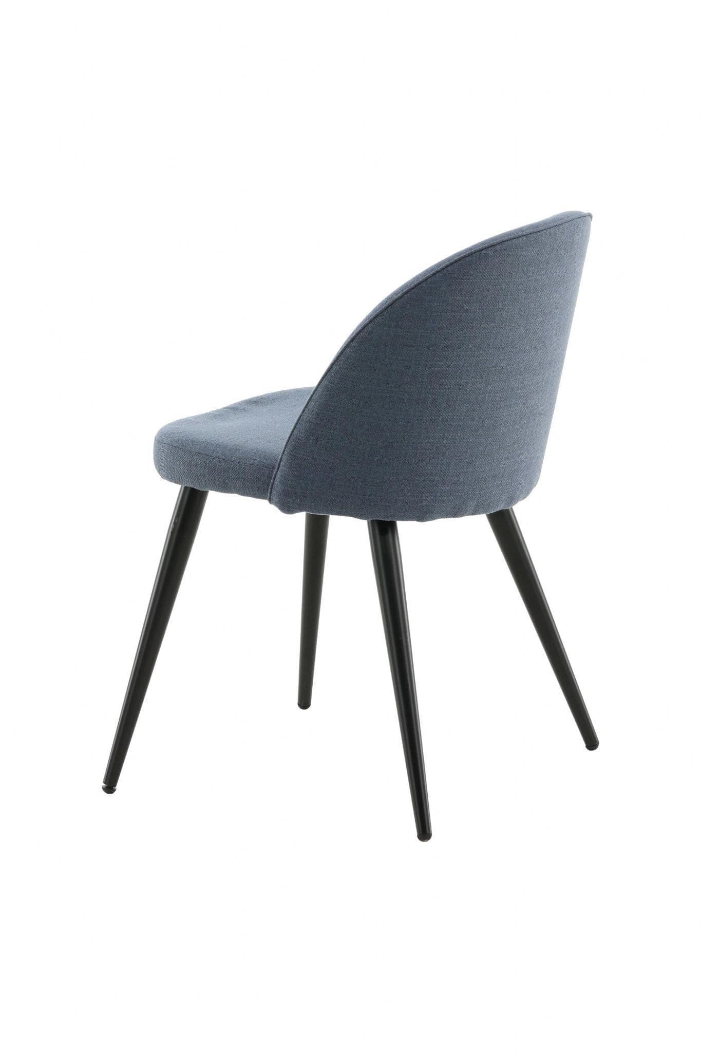 Furnish the heart of your home in a pleasant blue shade with dining chairs from the Velvet series. The stylish design makes the chairs easy to match with a cozy dining table. Back and seat upholstered in padded blue polyester fabric and legs in black powder – coated metal. Some assembly required. Enjoy pleasant meals ahead! Care instructions: Use fabric spray to impregnate the fabric before use, which will also make any dirt and stains easier to remove in the future. Remove stains immediately, do not rub, but try to gently absorb them with a cloth.