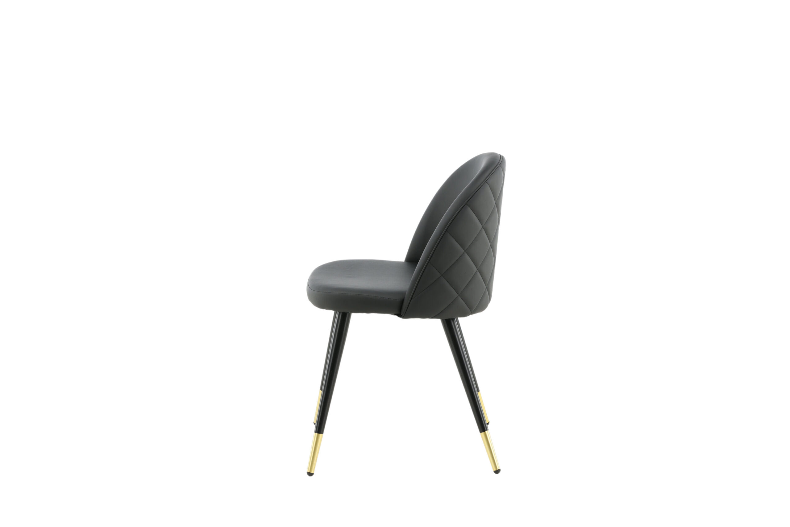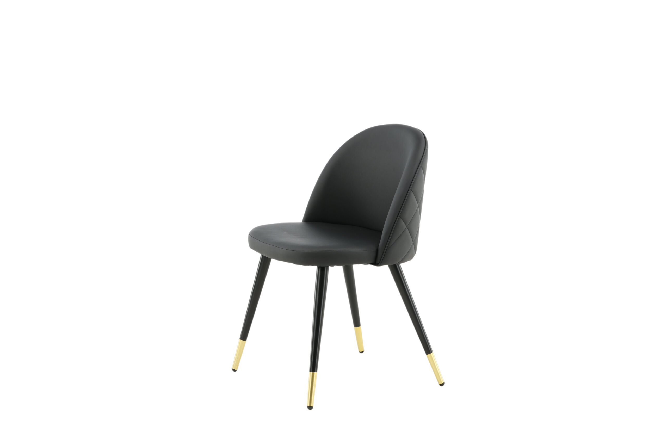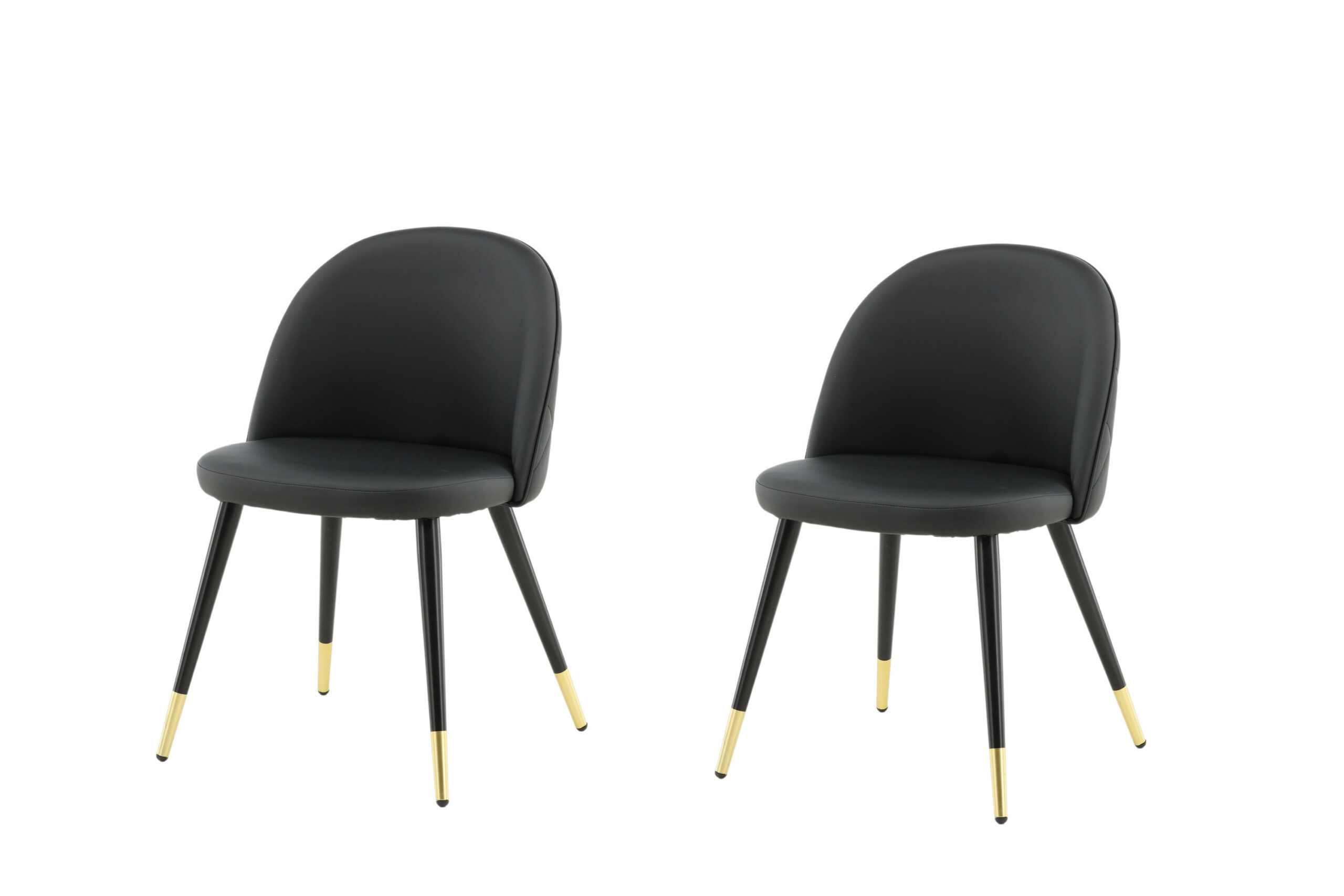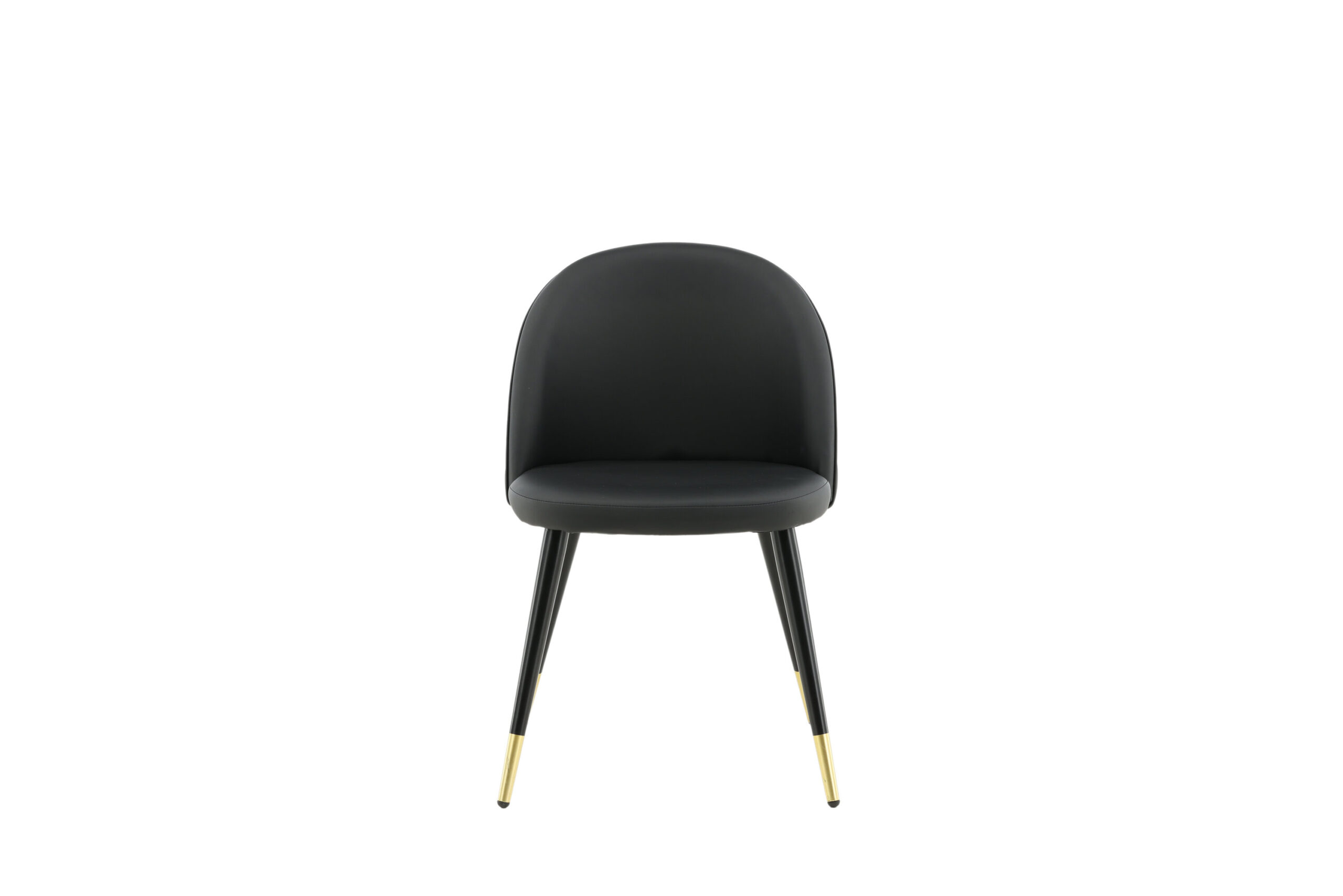 Velvet – a bold dining chair with detailed and luxurious design! The rounded back and seat are softly padded in black artificial leather with decorative stitching. Legs are black powder-coated metal with leg details in brass foil for an eye-catching look. Some assembly required. Care advice: Artificial leather can be cleaned with a soft, damp cotton cloth. For tougher stains, use a suitable cleaner for PU (test first on a less visible area).