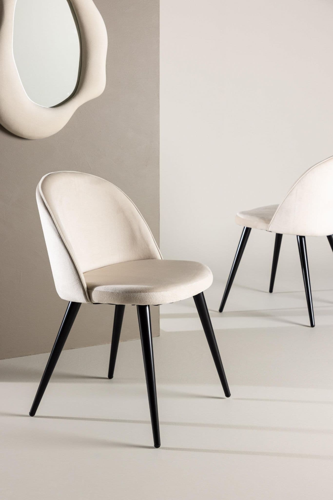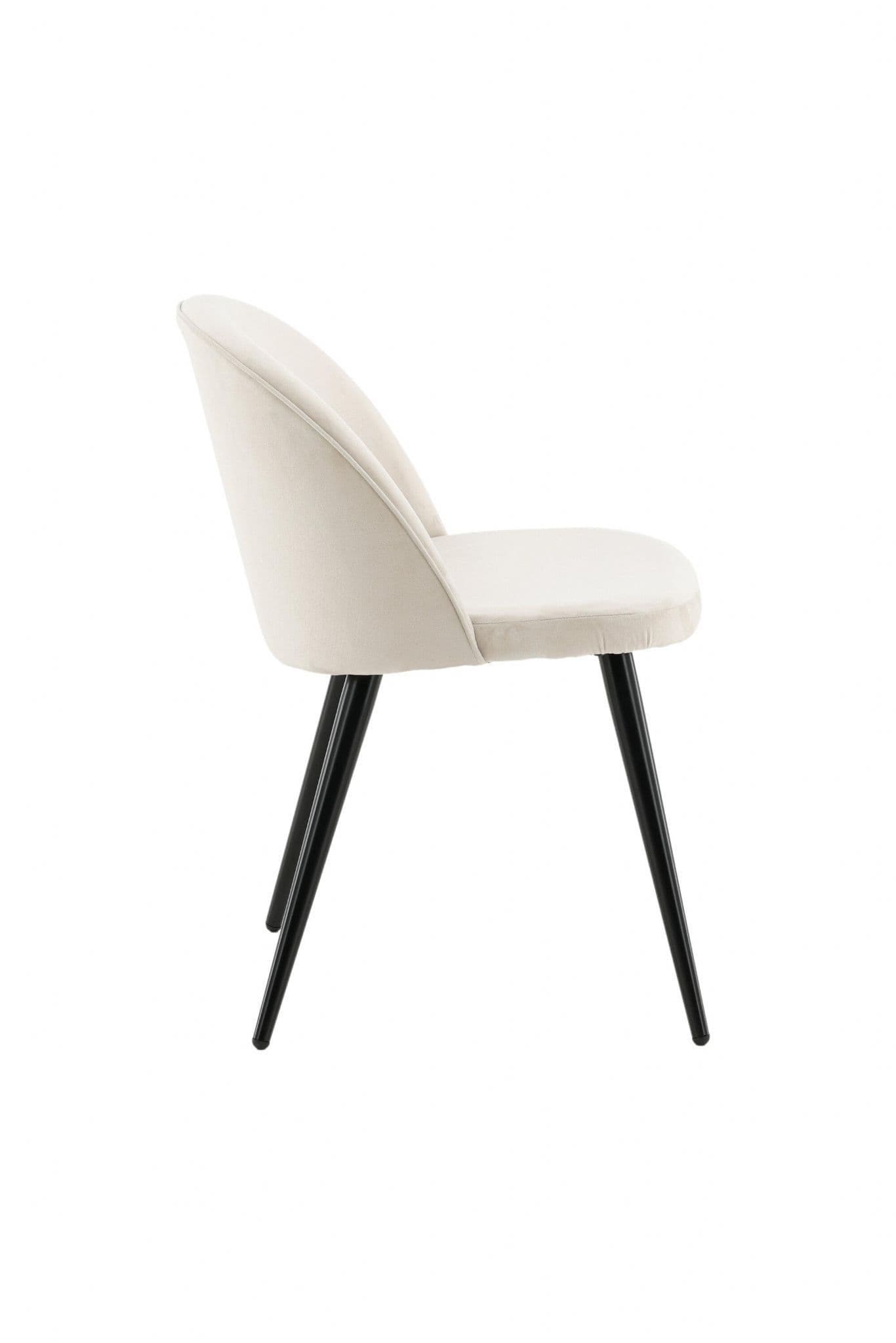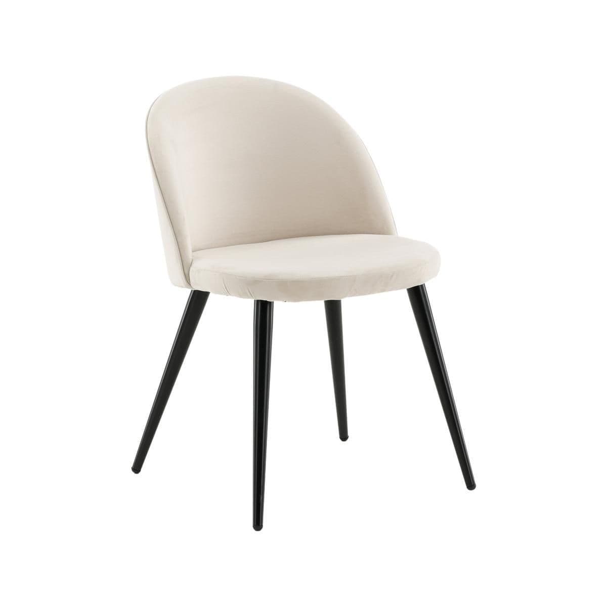 A modern chair from the Velvet series in stylish beige color! This dining chair has a fully dressed design with a slightly rounded back and seat in velvet fabric and legs in black powder coated metal – guaranteed as comfortable as eye – catching. Furnish the home’s heart inviting and pleasant and enjoy lovely meals together! Lighter assembly is required. Care advice: The velvet has a tendency to get pressure marks when the pile lies down. The imprints can make the fabric look worn out, which here is quite normal for this type of material. Depending on how the light falls, the fabric can change in most different shades.