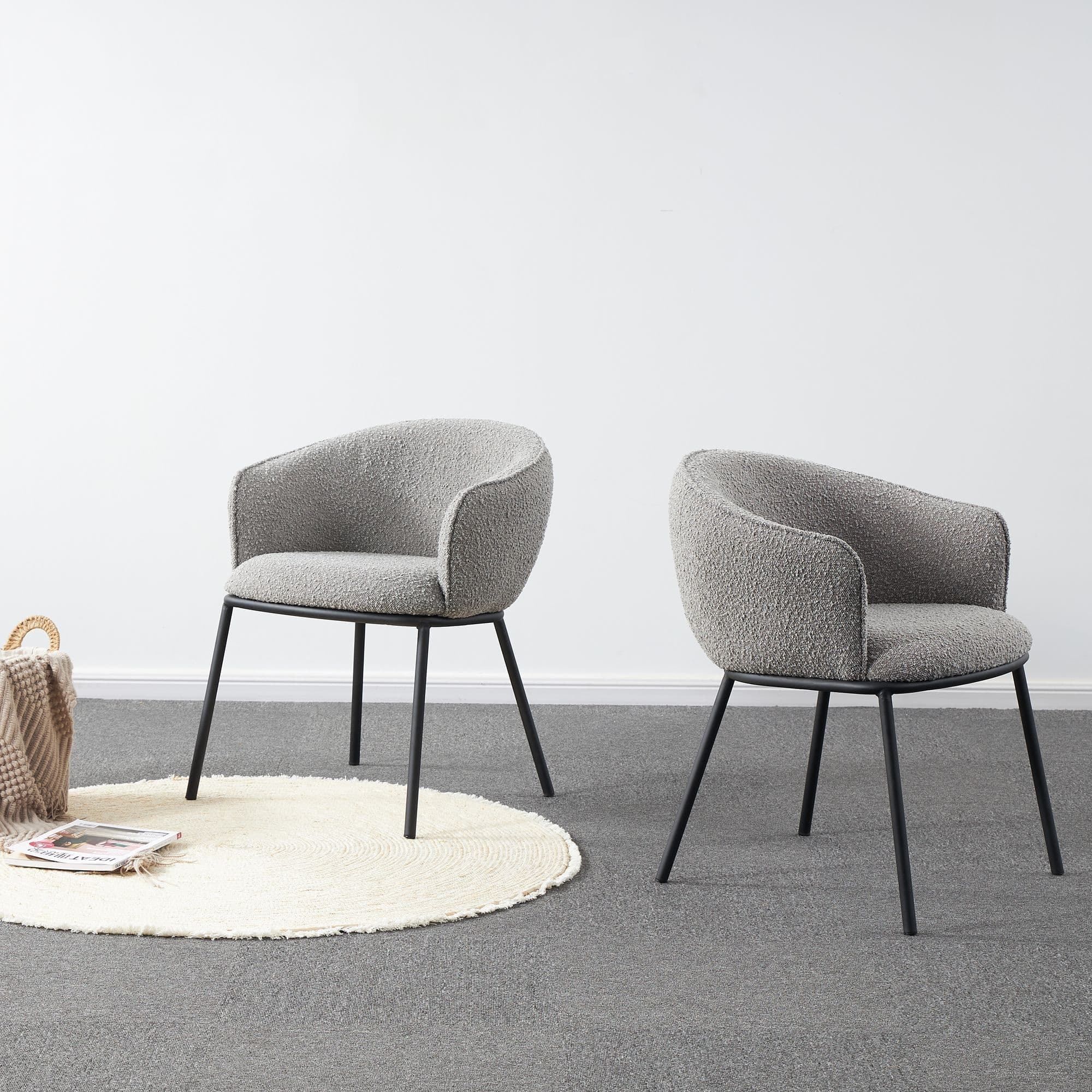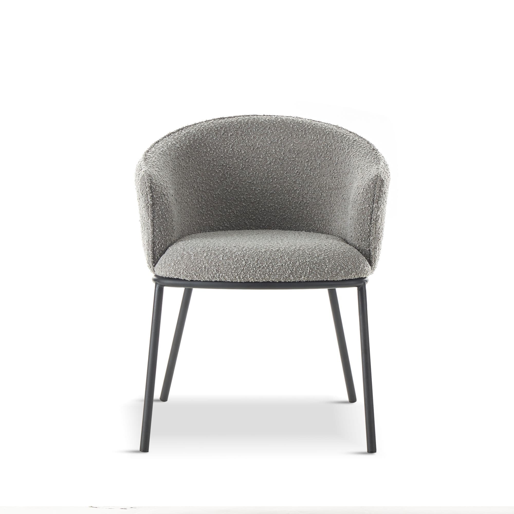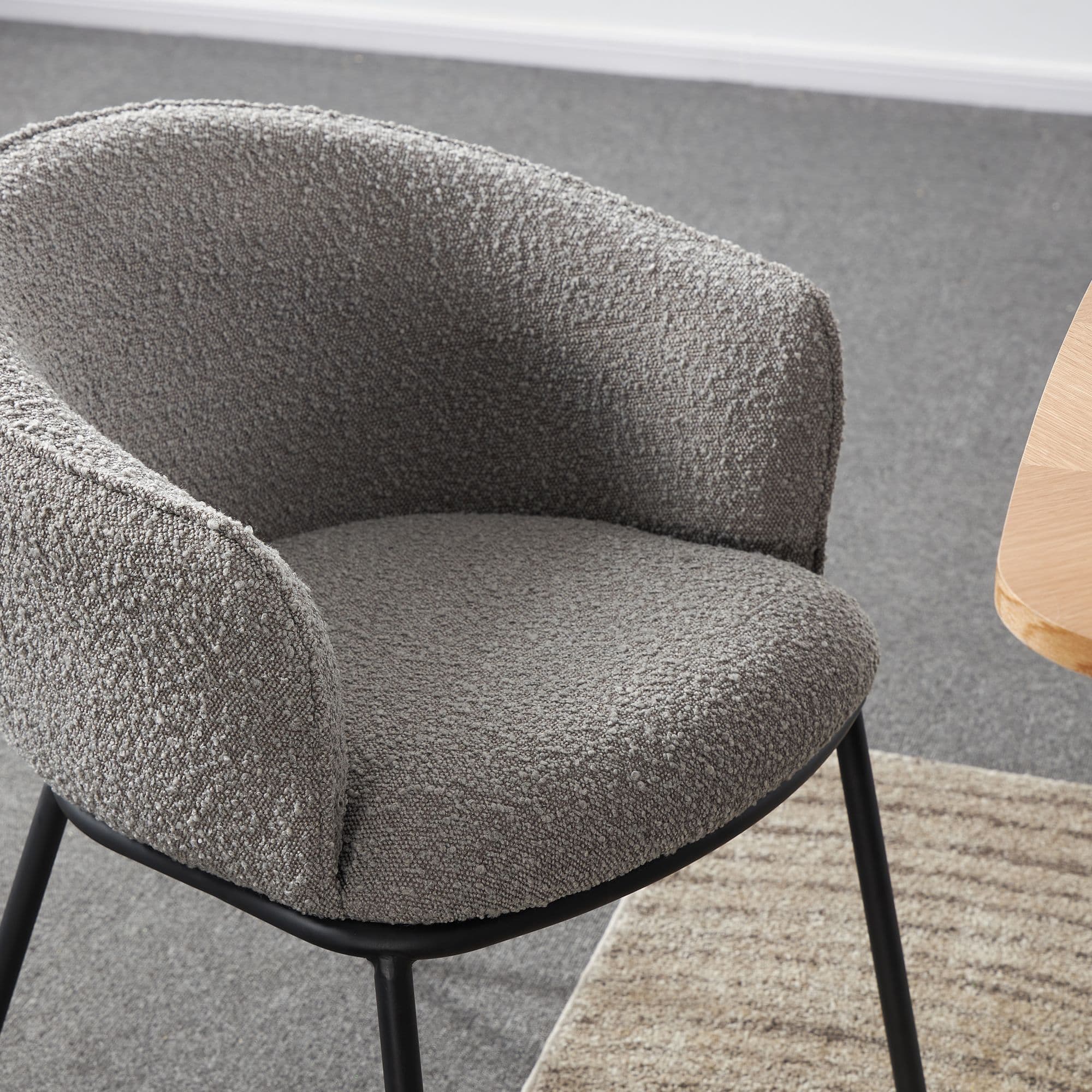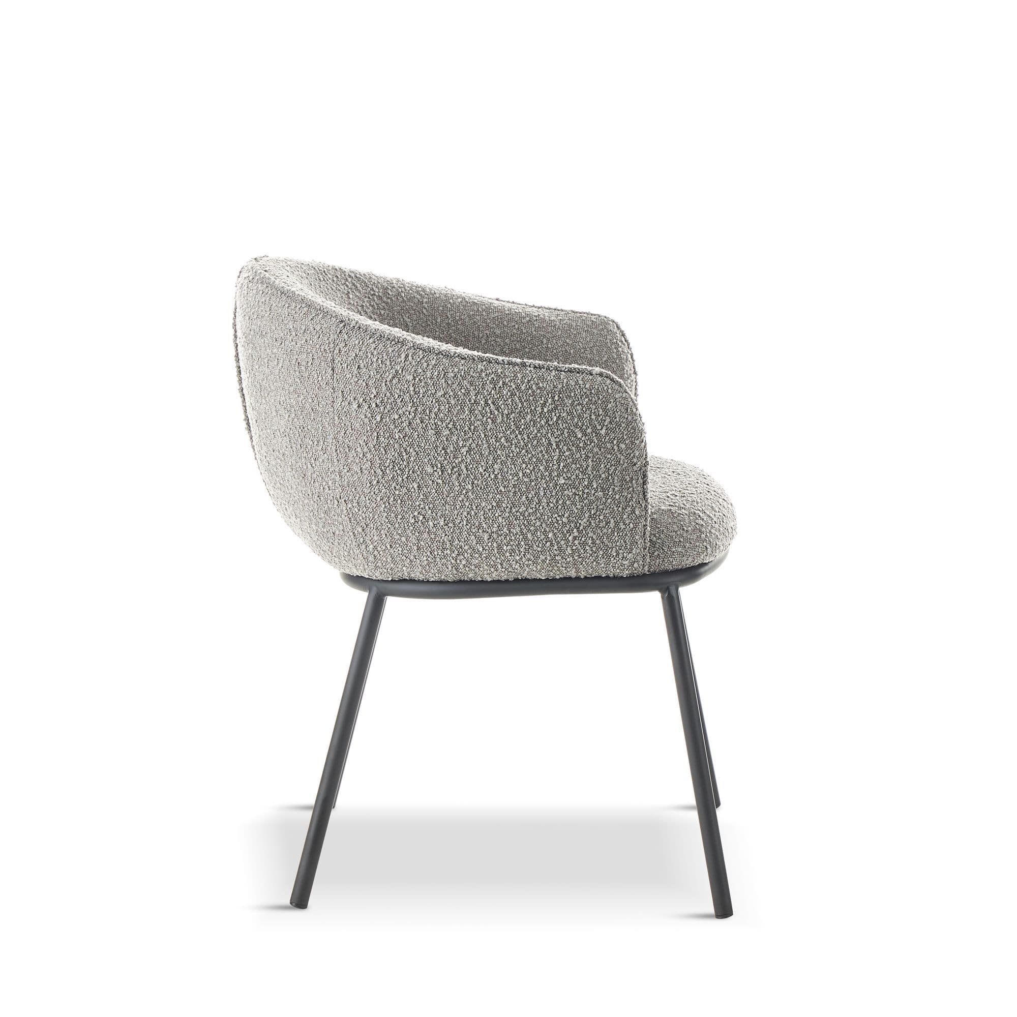 Introducing our high end collection the DUKE chair features a seat made of boucle fabric a popular material that is known for its soft texture and unique looped design The boucle fabric not only adds a touch of elegance to the chair but also provides a comfortable and cosy seating experience The legs are black powder coated adding a sleek and modern look to the overall design It also provides durability and ensuring that the chairs will look great for years to come With its combination of comfort style and durability the DUKE chair is an excellent choice for any dining area.