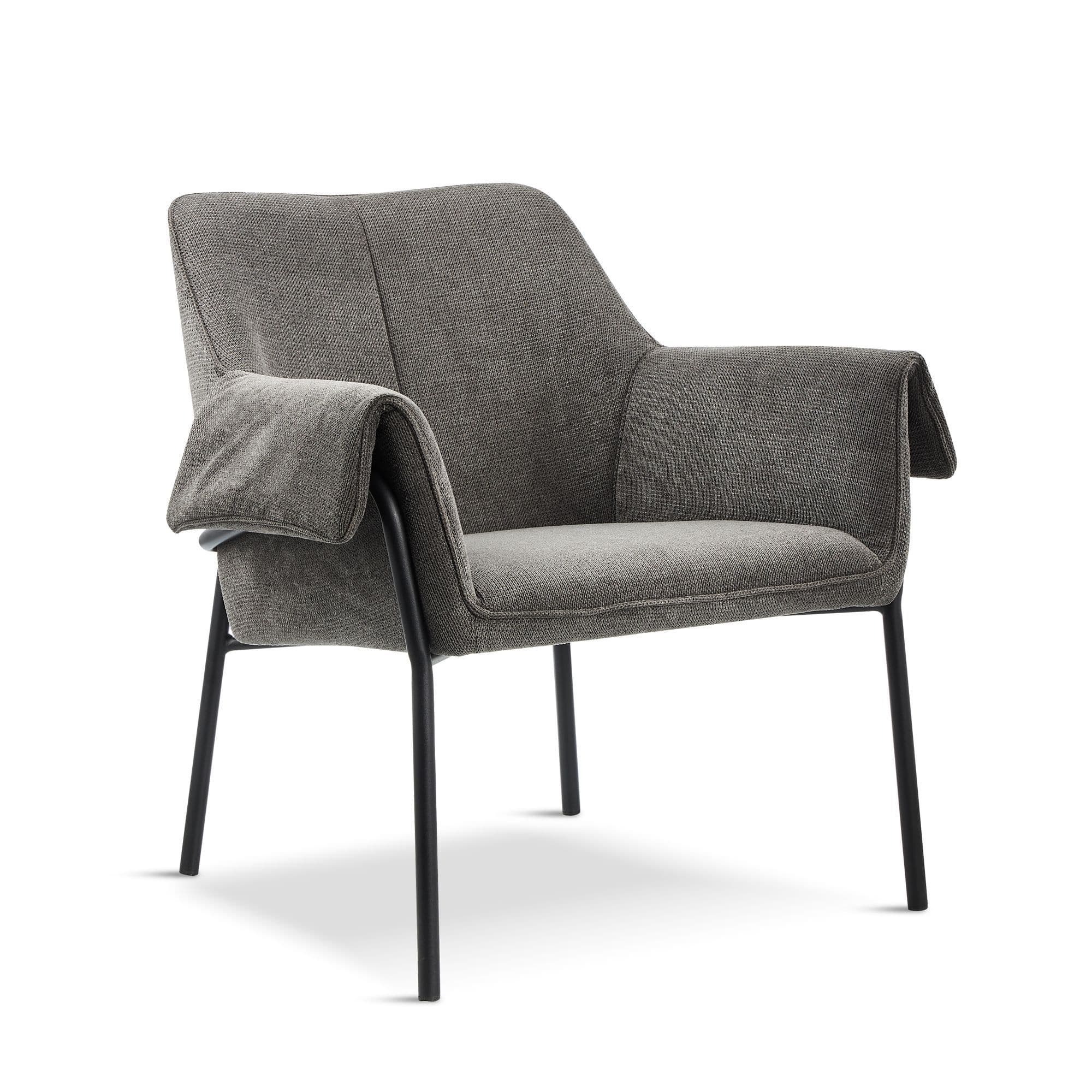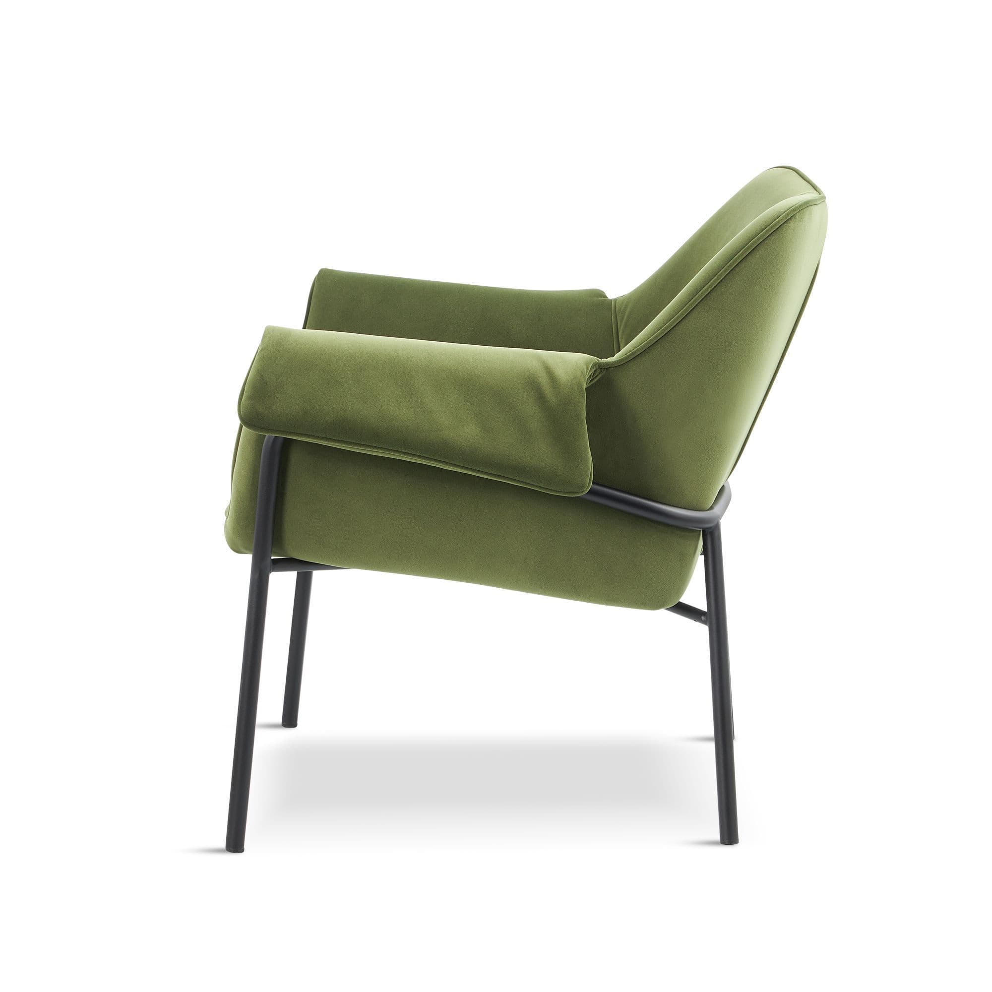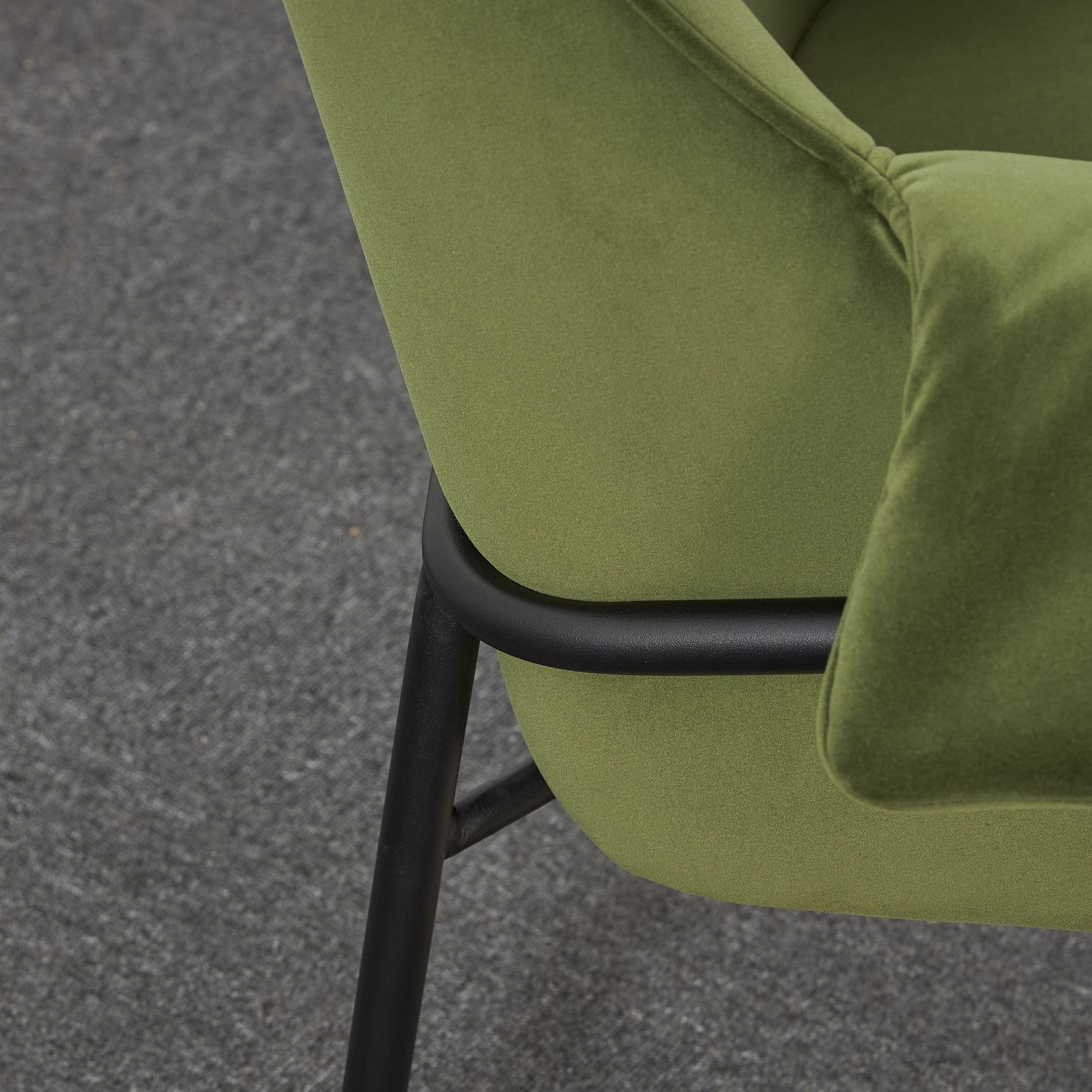 Fabric dining chair with tubular metal legs Combines comfort and modern design Perfect for creating a cosy lounge corner in your living room or as a stylish dining chair Colours Available Dark grey olive and red.