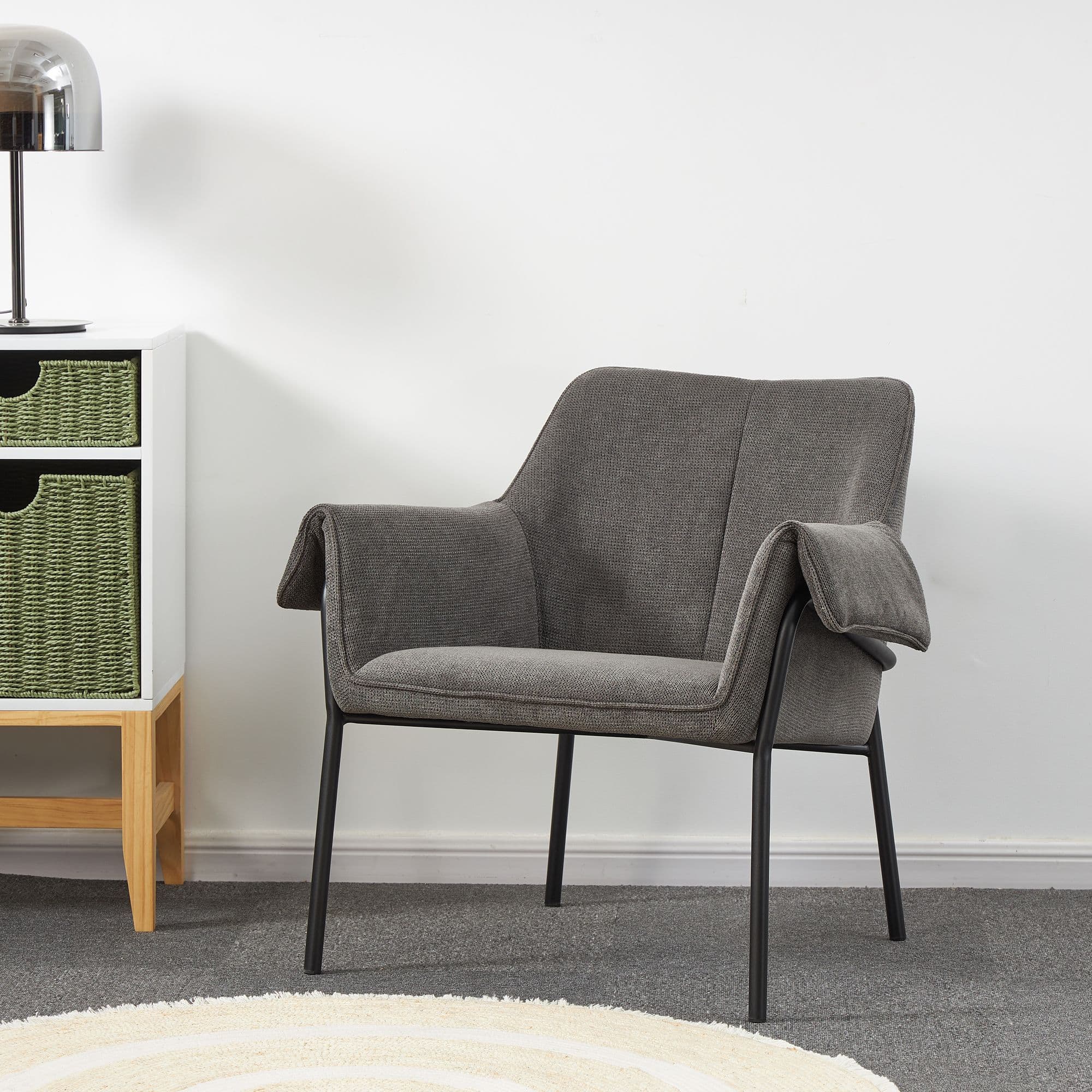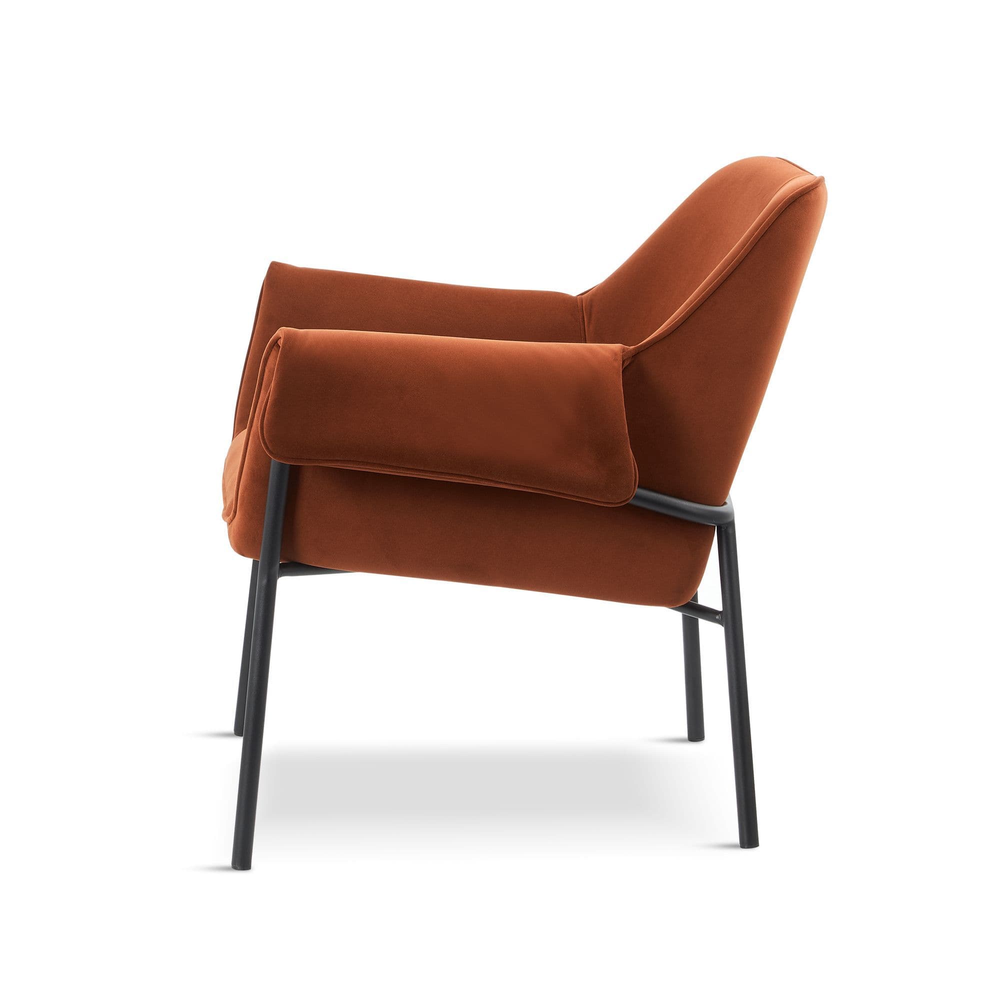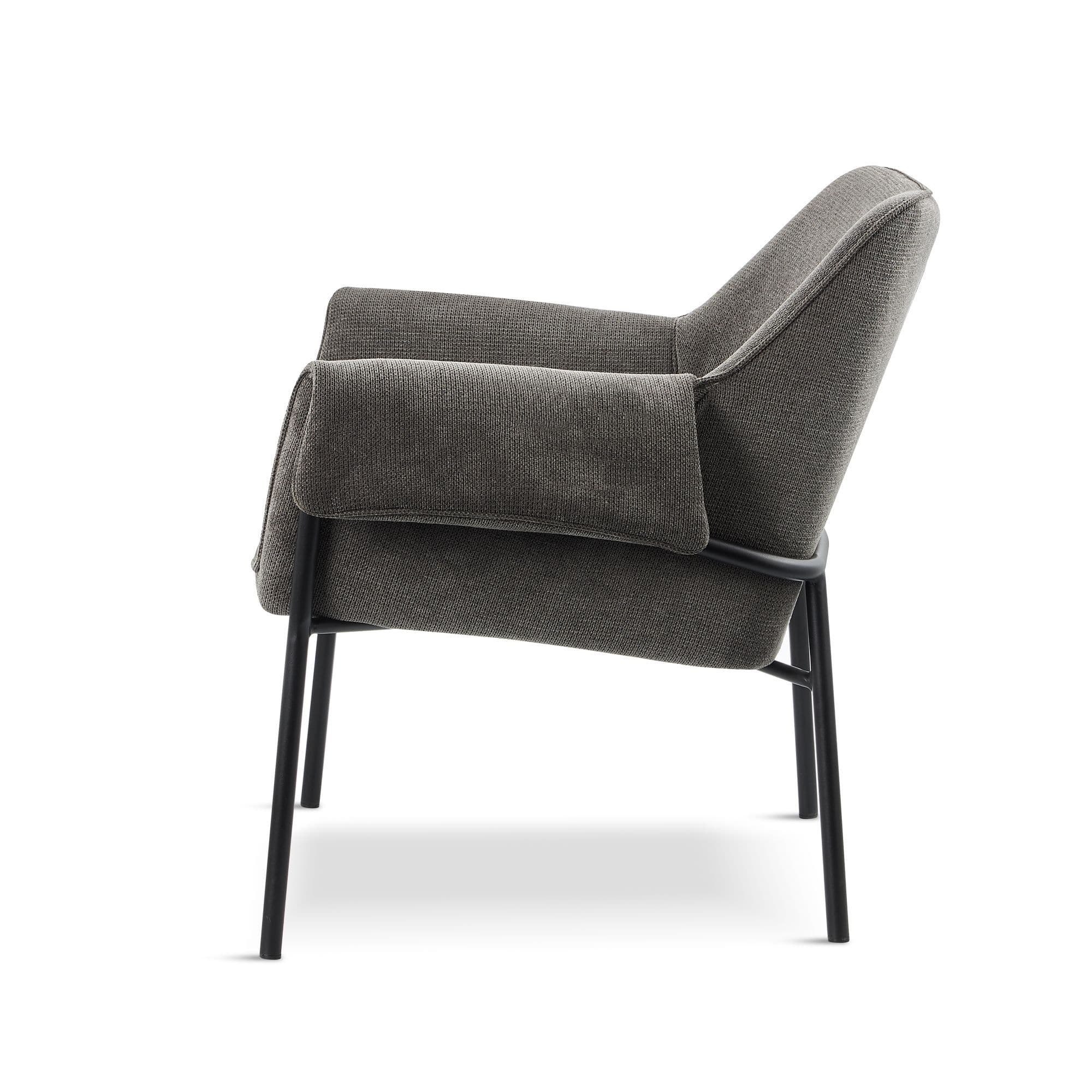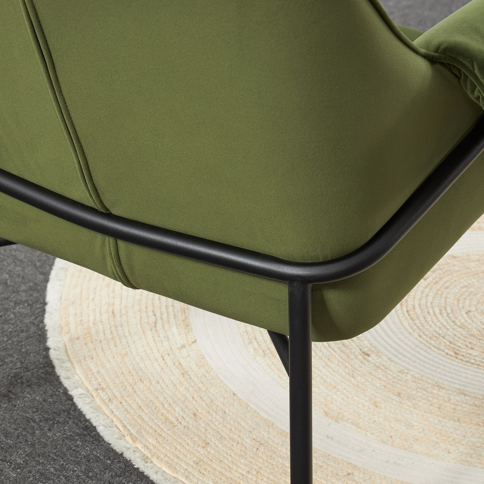 Fabric dining chair with tubular metal legs Combines comfort and modern design Perfect for creating a cosy lounge corner in your living room or as a stylish dining chair Colours Available Dark grey olive and red.