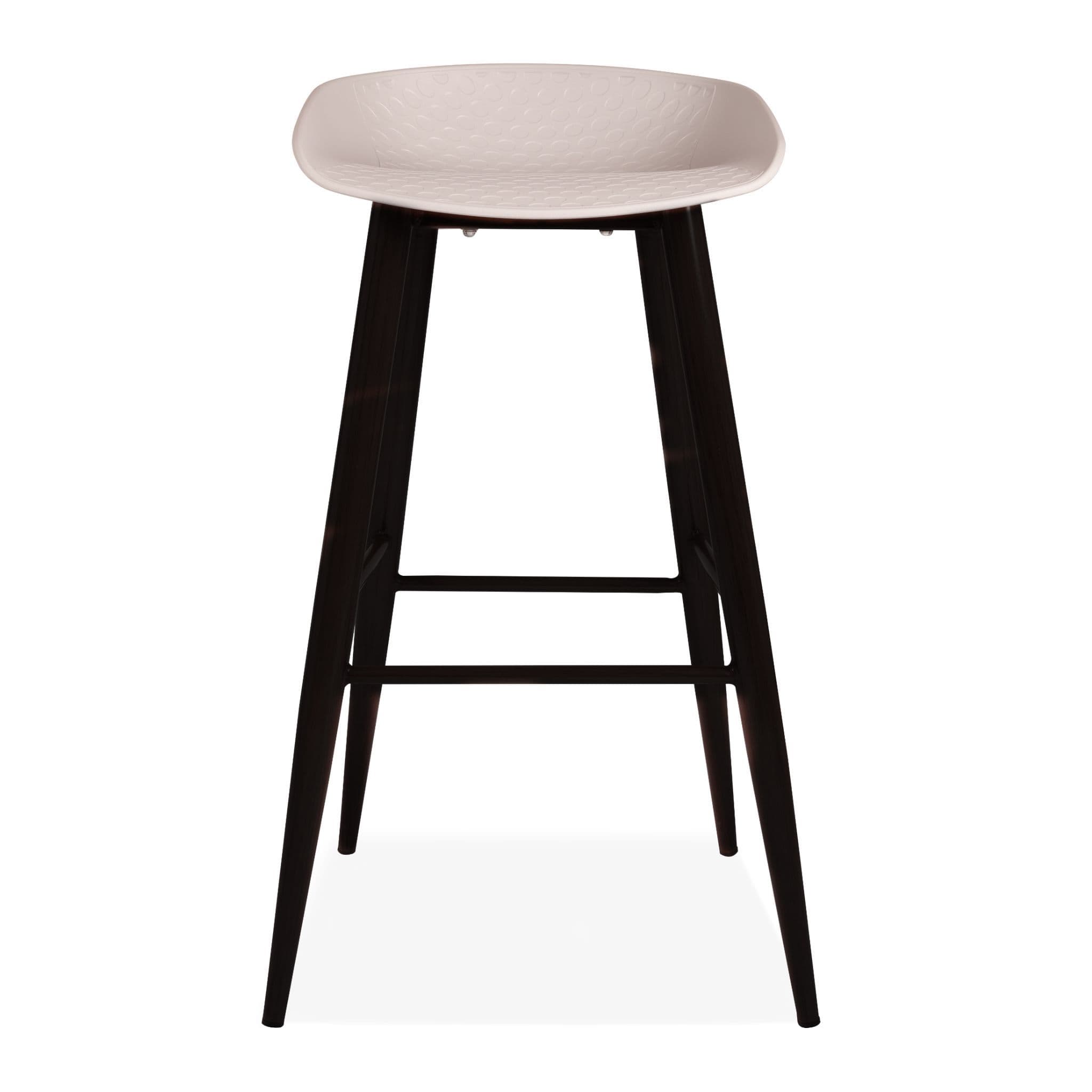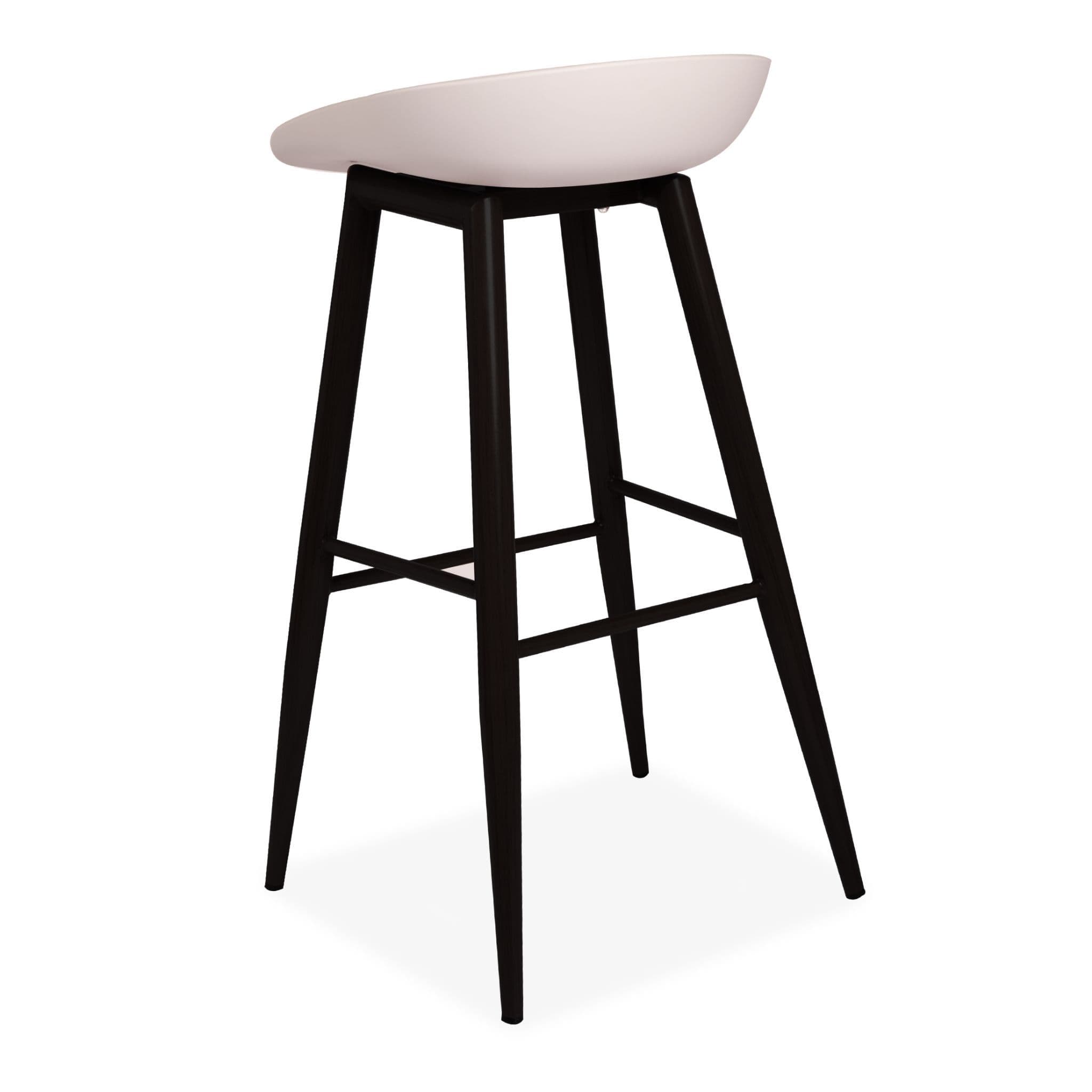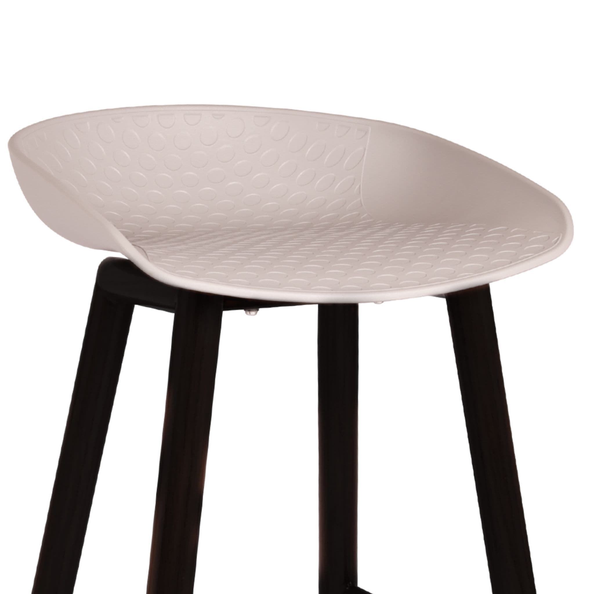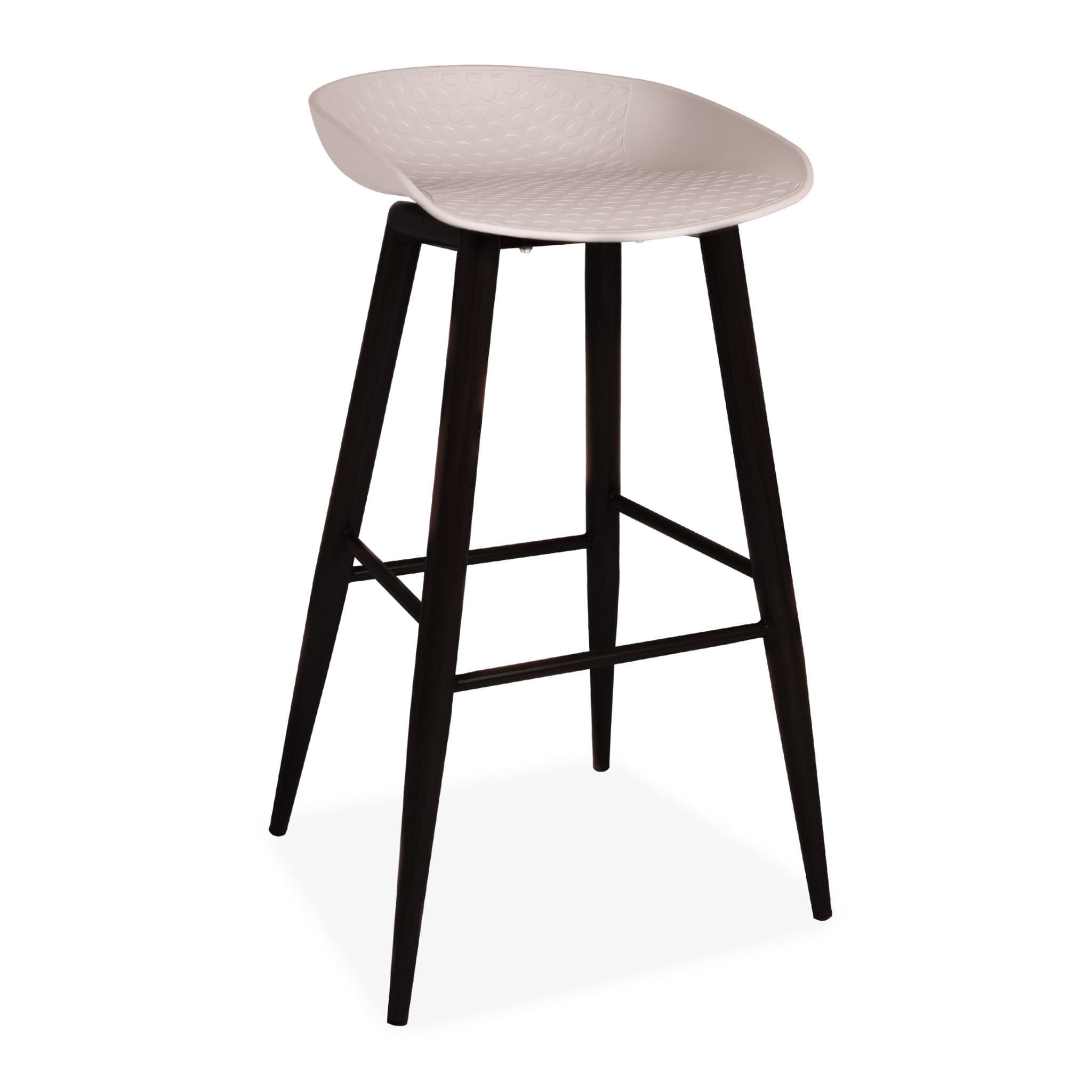 Sleek modern barstool with a sturdy plastic seat in black or grey. Designed for comfort and style an ideal accent for home, kitchen, or bar. Contemporary metal legs are built to withstand daily use.