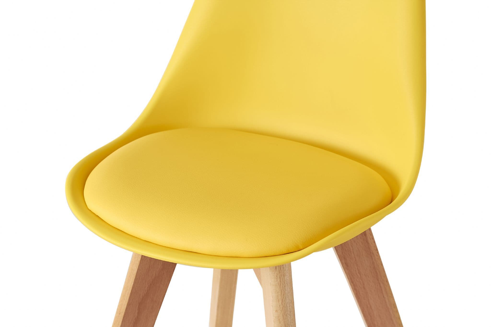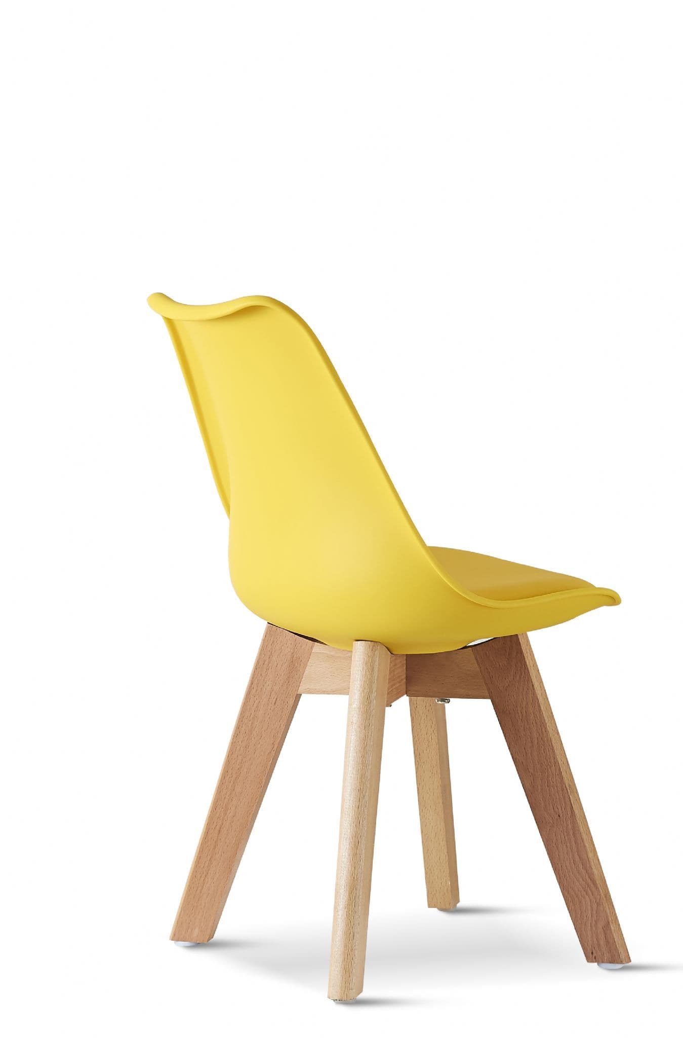 Simple Practical and High quality chair with solid wooden legs and soft pad seat is perfect for Childrens room Inspired by Knoll Eero Saarinen Designed Chair With Cushion With a padded seat these chairs not only look great but are comfy too The backrest is made from polypropylene plastic and is availalbe in multiple colours Its legs made of beech wood come with transparent non slip and anti scratch studs which allow them to be used on any type of floors or surfaces.