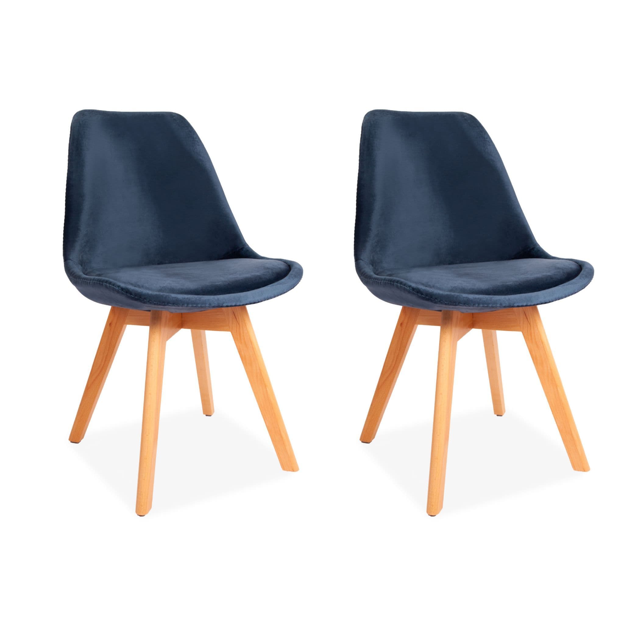 X2 Blue Tulip Velvet Dining Chairs, With Beech Legs