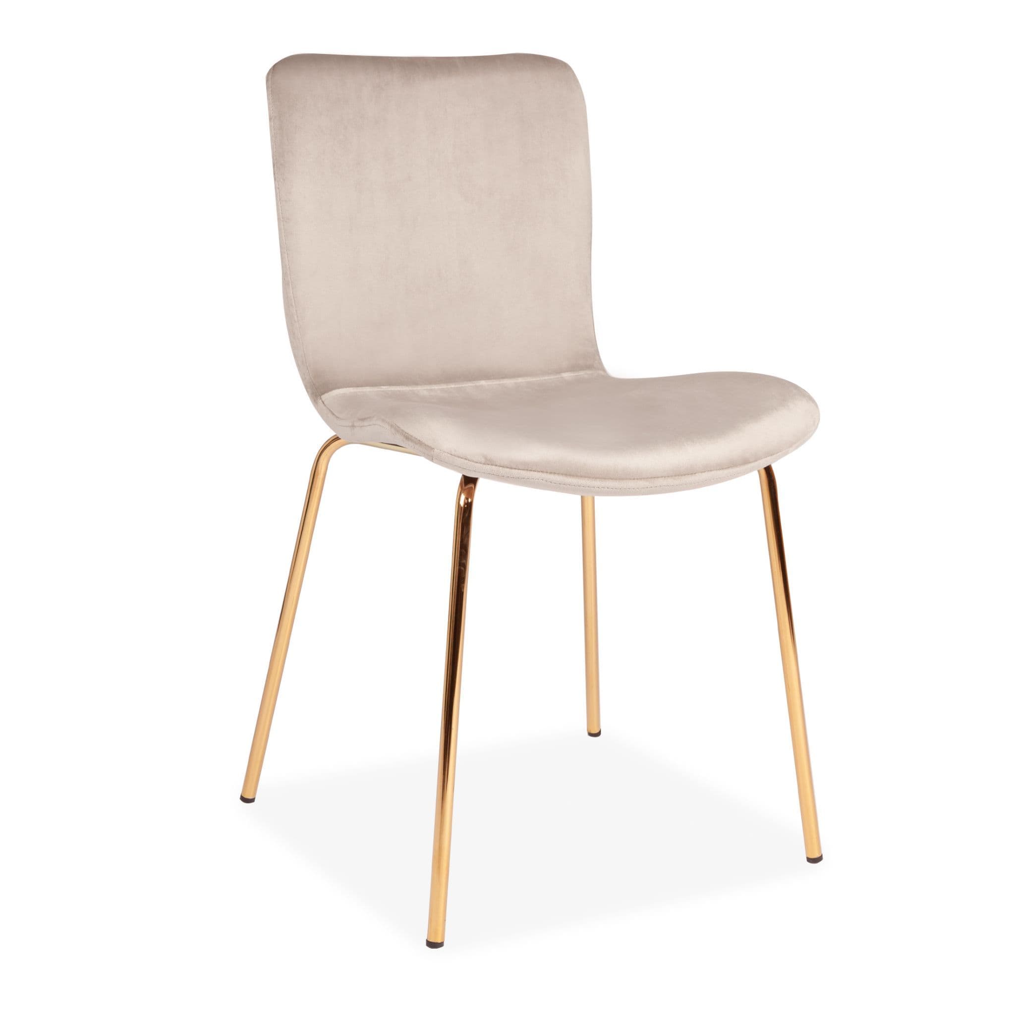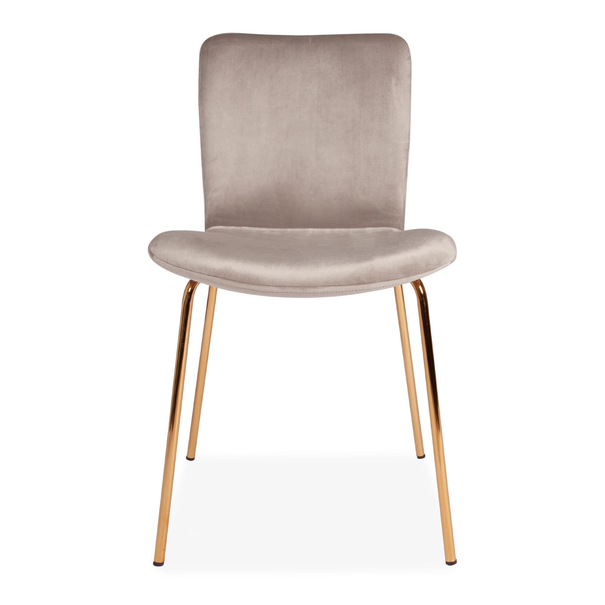 The Gillian dining chair is part of our luxury velvet line. Upholstered in champagne-grey velvet with gold legs, it complements many dining tables. Cushioned for comfort, modern and sophisticated.