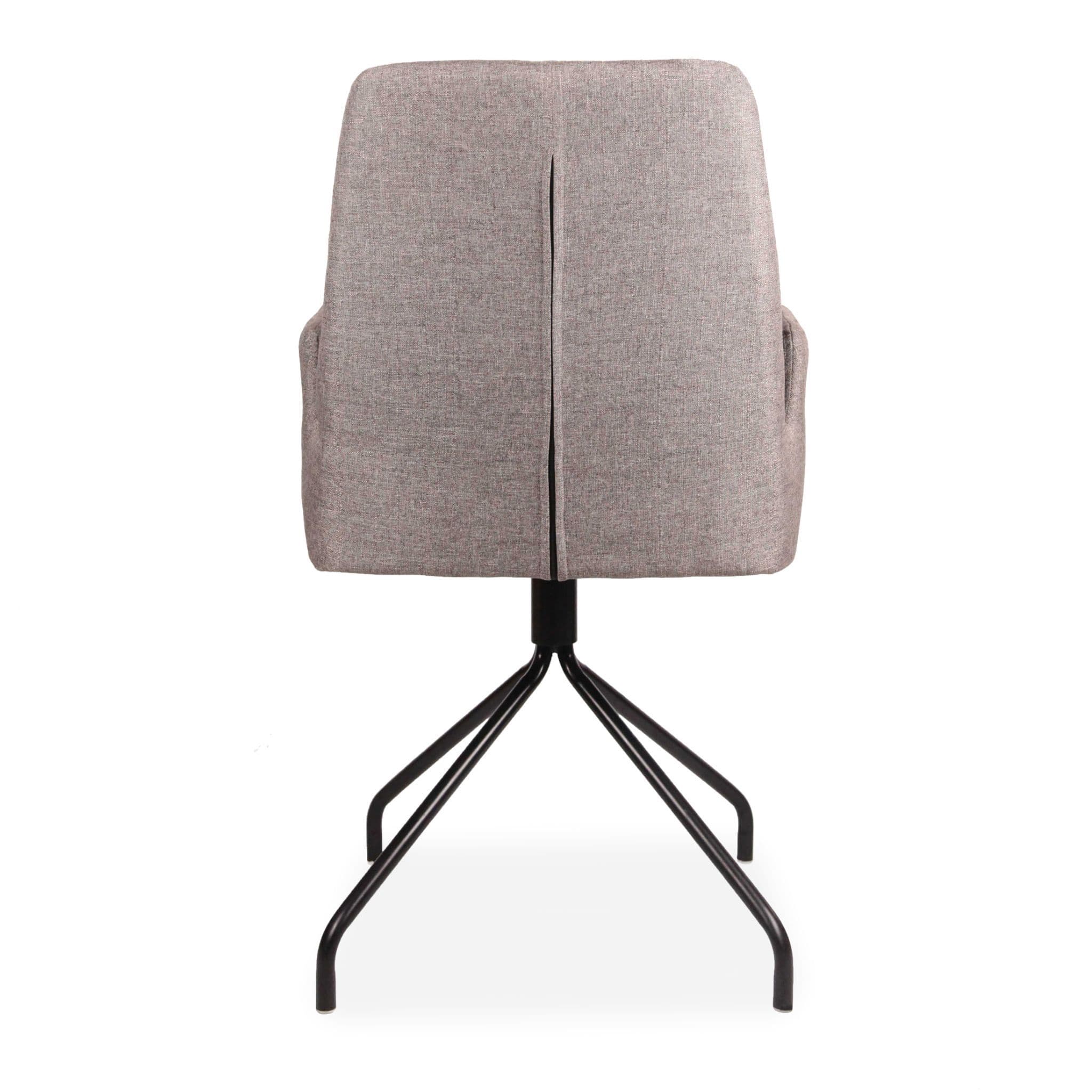 Contemporary dining chair, beautifully upholstered to serve as an accent piece. Extra cushioning contours to the body. Unique branch-style metal legs add a subtle retro note. Sleek high back with practical armrests. Perfect for a dining table or desk.