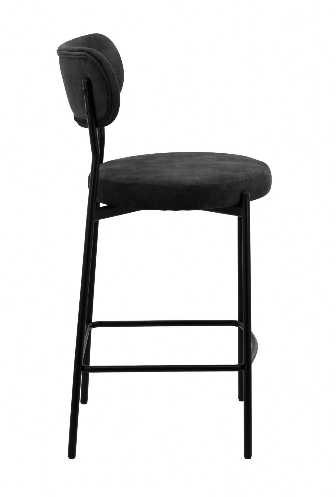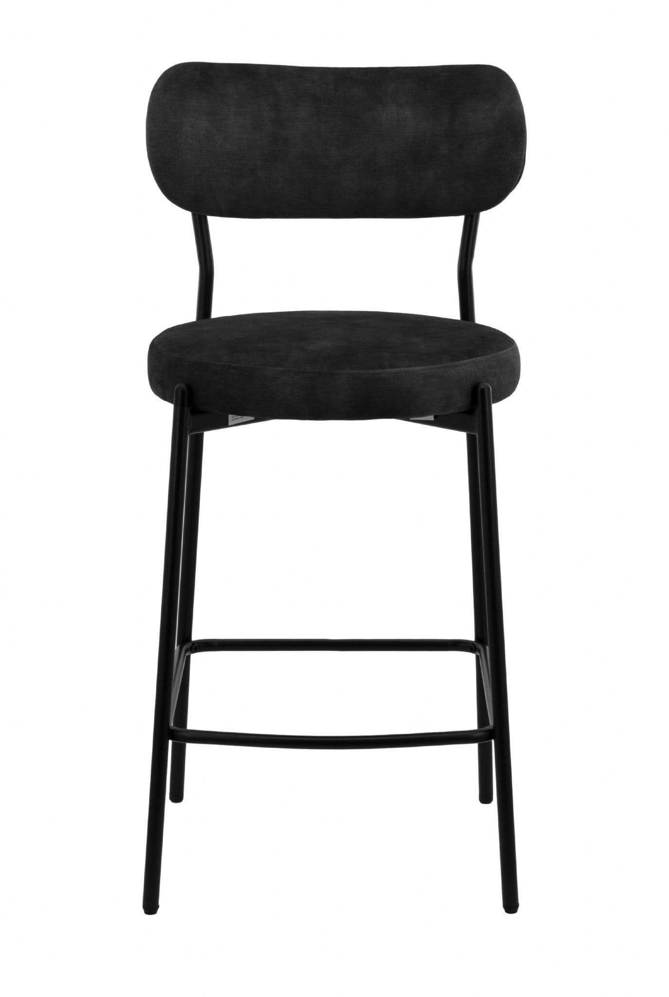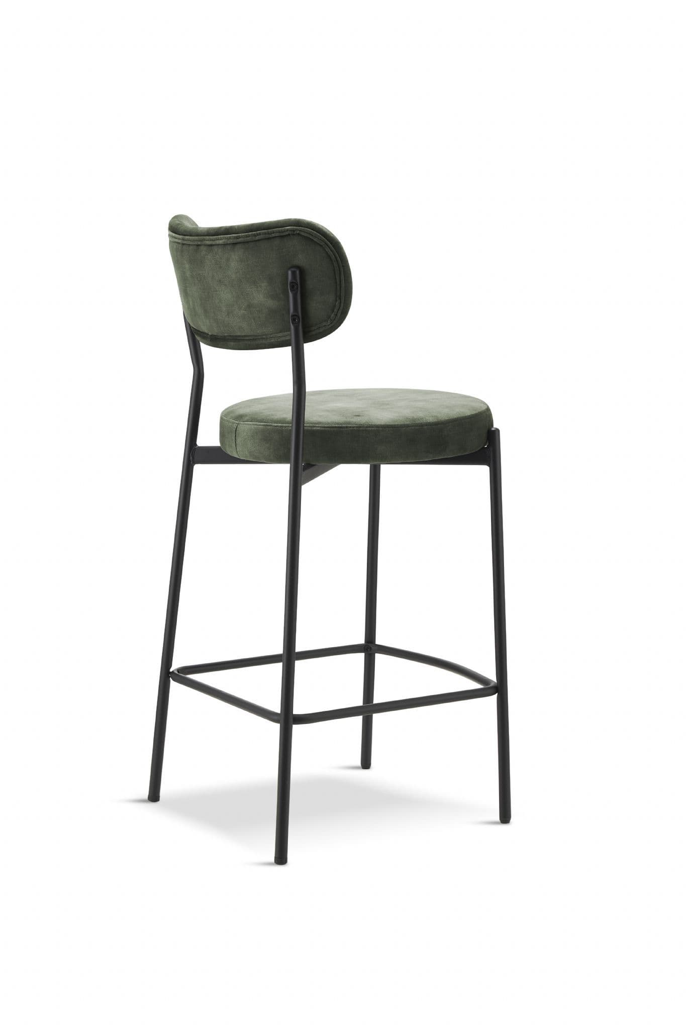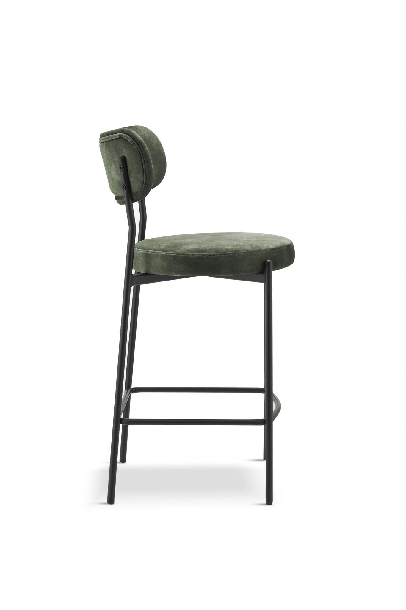 Minimalist and elegant design Breathable velvet covering for comfort Clean lines and open back design Matte black legs with square footrests Non marking feet to protect floors Available in Mustard Cream Dark Green.