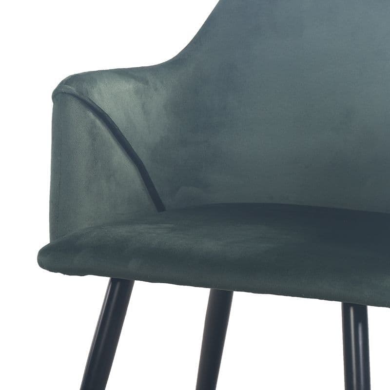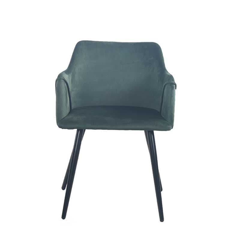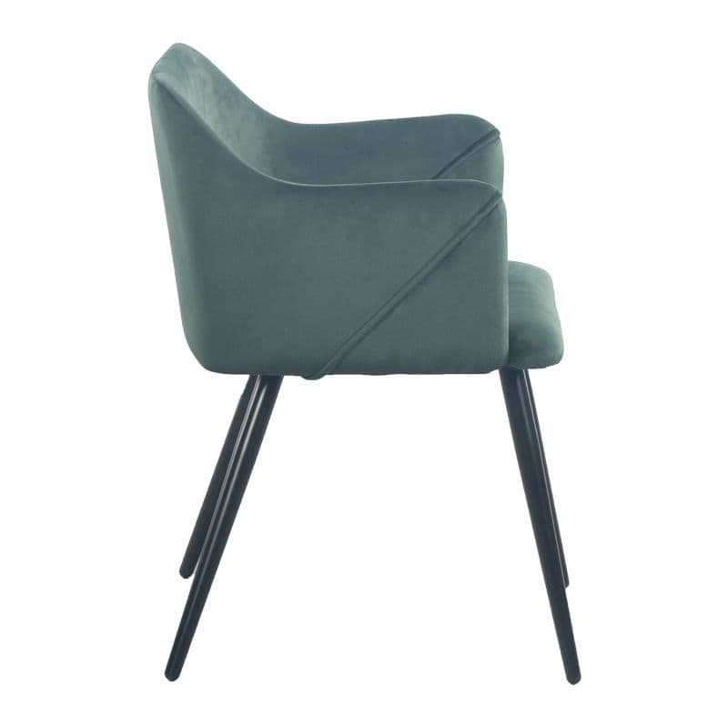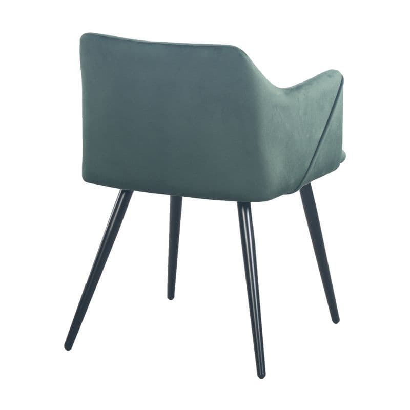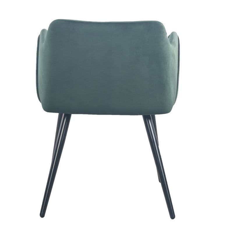 This amazing blackish green arm chair is beautifully upholstered with plush velvet fabric Supported by modern black legs Style with one of our modern tables or as an occasional chair to uplift an empty corner Style it with one of our modern black leg dining table to curate unique dining set just for your home Or arrange in your office or dressing room for an instant upgrade Designed with style and comfort in mind this chair is perfect for any contemporary home.
