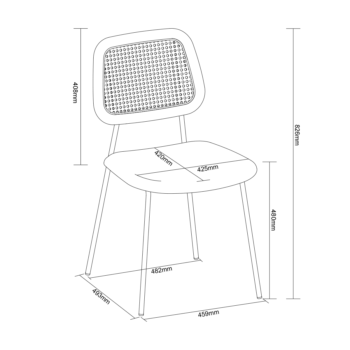 A modern grey dining chair upholstered on both seat and back and paired with sleek black pin legs. Ideal at a desk, vanity, or dining table pair with a black-leg table for a unique set.