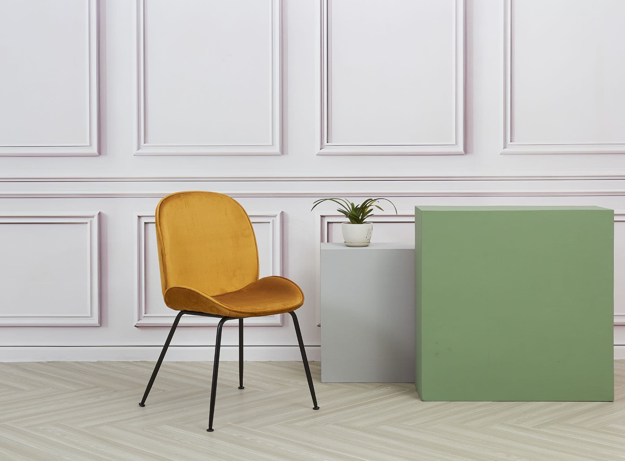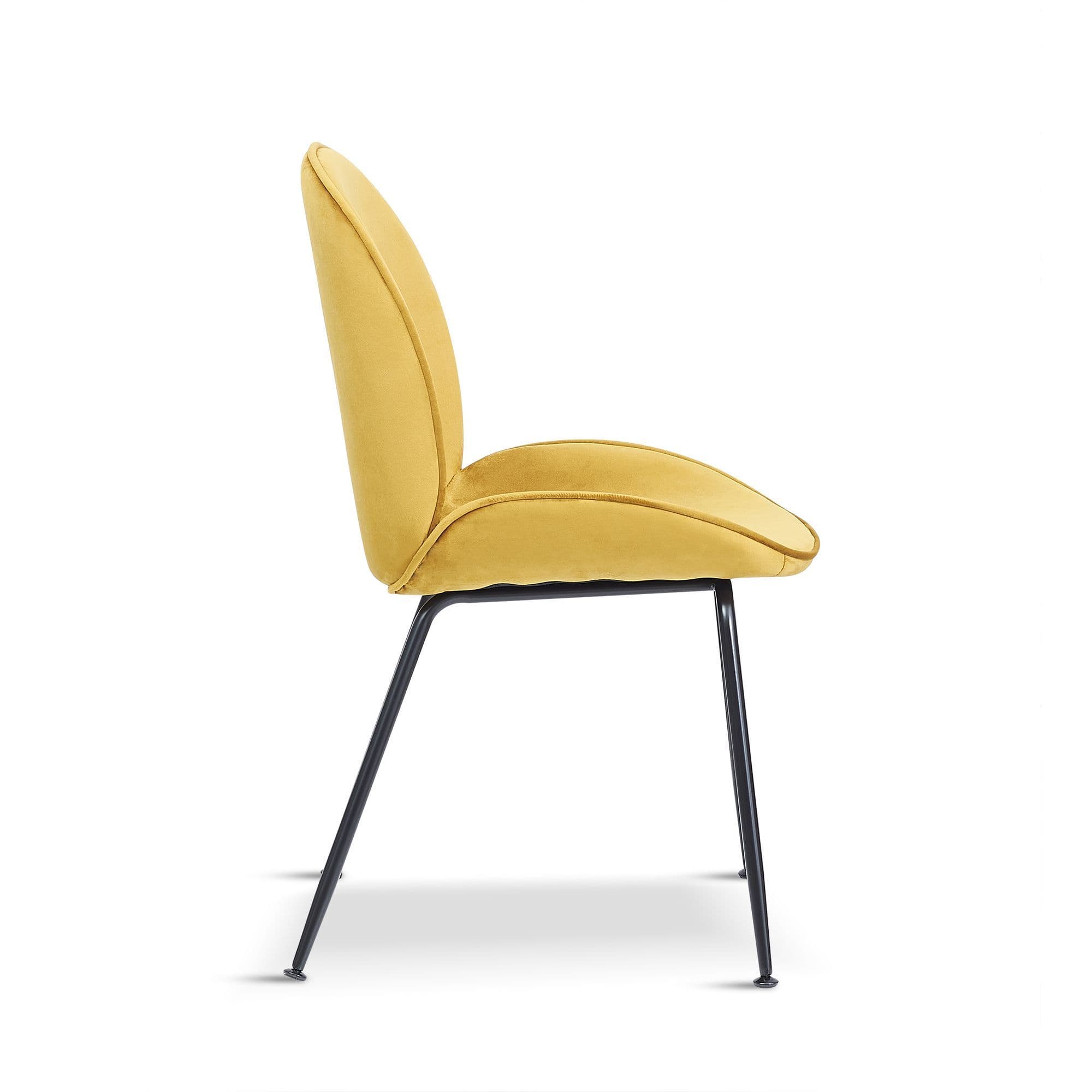 This Beetle Designer inspired dining chair is one of our most popular products valued not only for its style but its comfort too The Back and seat are made from two curved added shells the leading lines replicating that of an insects shell The elegant gold legs are suited to any sheek modern home Perfectly matchable with a dining table desk or even use it as an occasional chair This chair is available in multiple colourways and also has a black leg option.