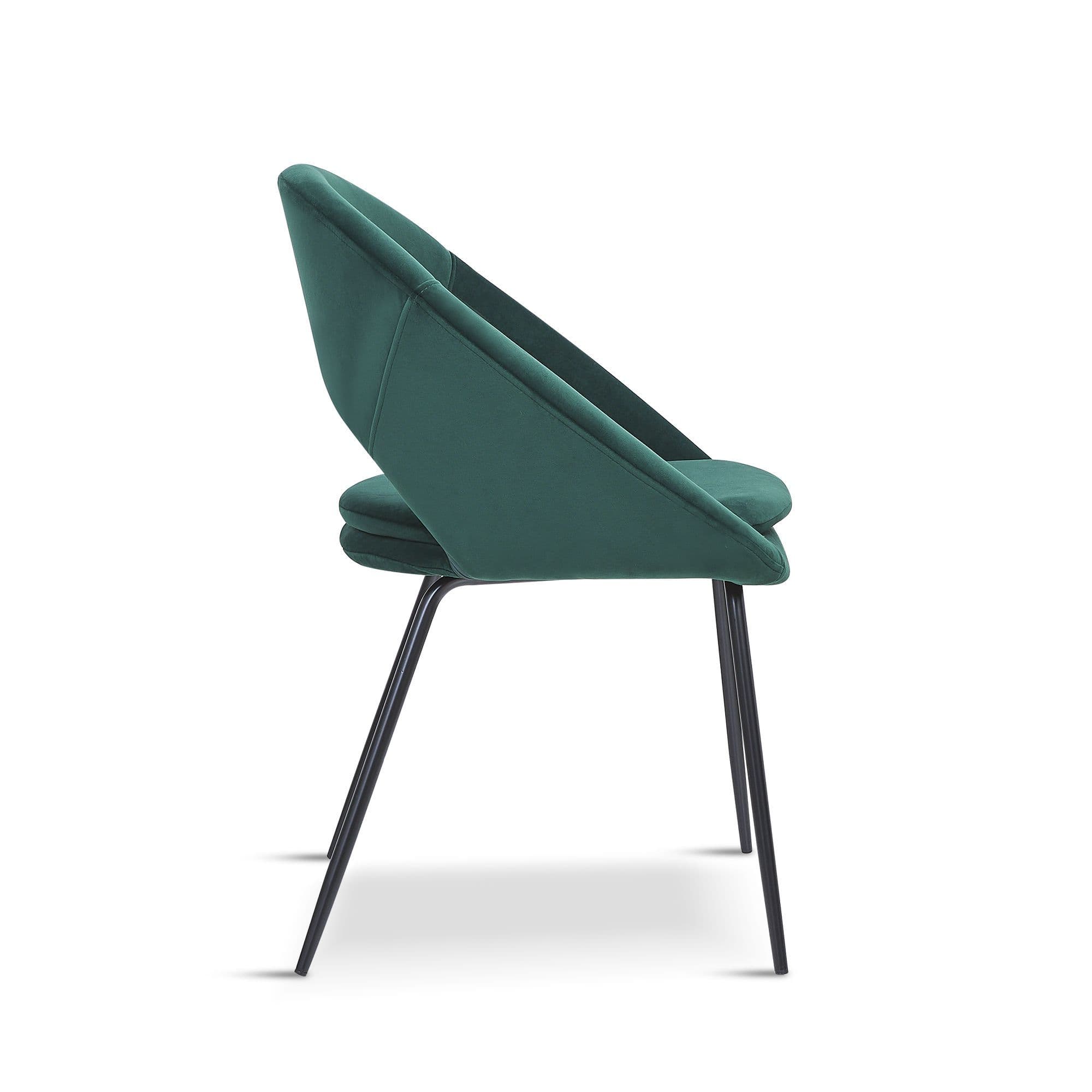 Introducing the fan shape velvet dining chair the latest addition to our collection of stylish and modern chairs These chairs are available in three beautiful colours Green Grey and Blue and come with a choice of Gold or Black legs to suit your personal style Key features of the fan shape velvet dining chair include Unique fan shaped design The chairs unique fan shaped design is both eye catching and comfortable making it a great addition to any dining room or living space High quality velvet upholstery The chair is upholstered with high quality velvet fabric ensuring a comfortable and luxurious seating experience Versatile usage The chair can be used as a dining chair to add a touch of style to your mealtimes or as an occasional chair to uplift an empty space and make a statement Easy to match The fan shape velvet dining chair can be easily paired with one of our stylish and modern tables to create a cohesive and coordinated look in your dining room or living space.