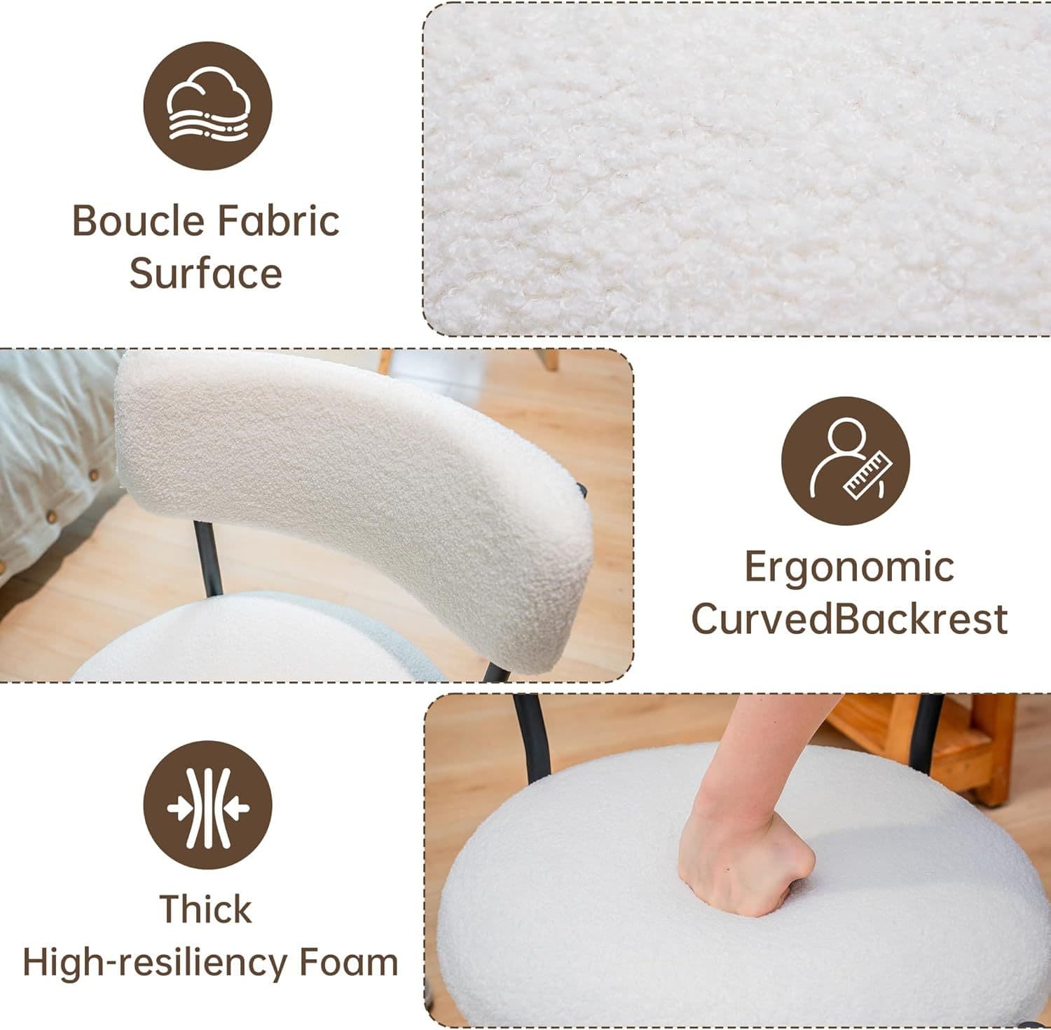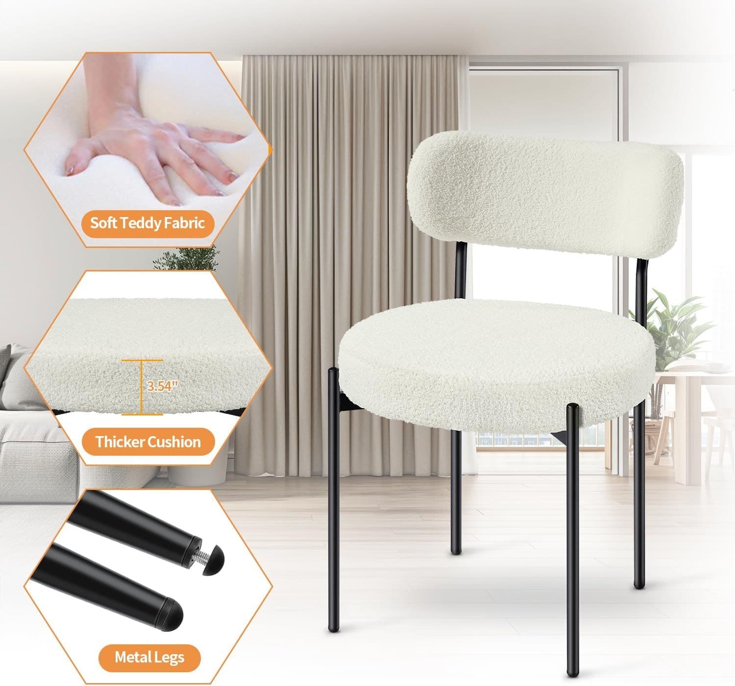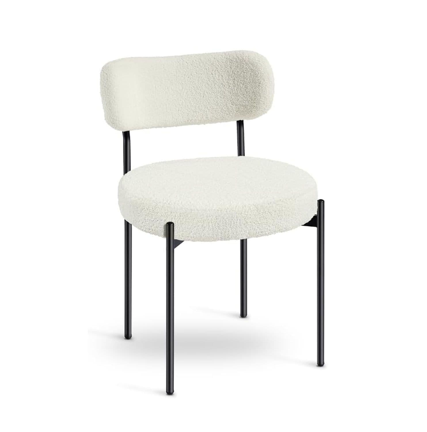This chair features a subtly curved back and a rounded seat making them ideal for crafting a welcoming dining environment These chairs boast an ultra sleek design with slim black metal legs that beautifully contrast the cushioned back and seat enhancing their contemporary charm Upholstered in luxurious mustard yellow velvet these chairs add a touch of opulence to your dining setup Available in Mustard Cream Dark Green Boucle.