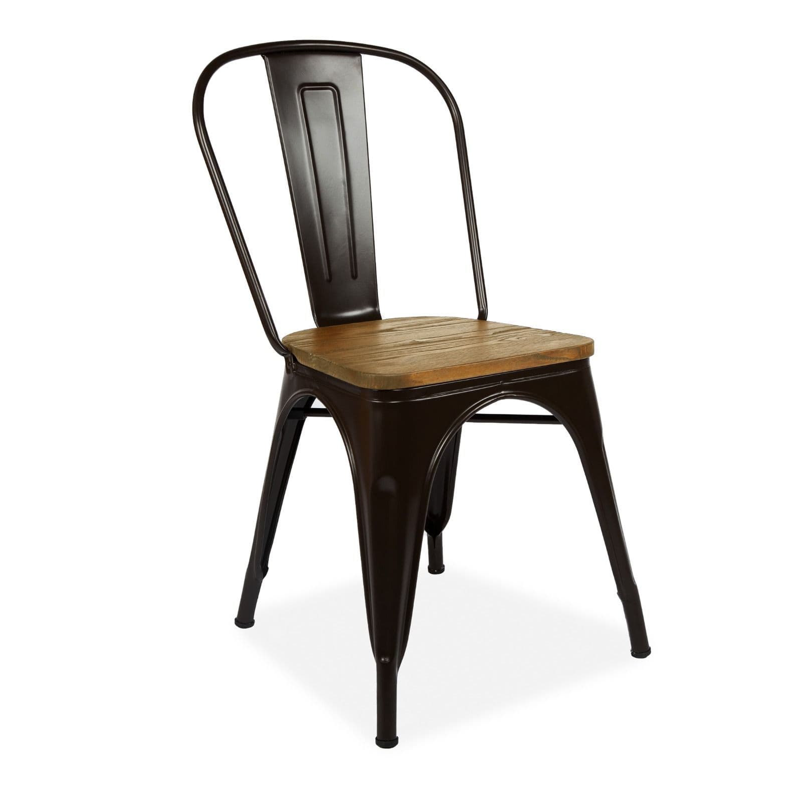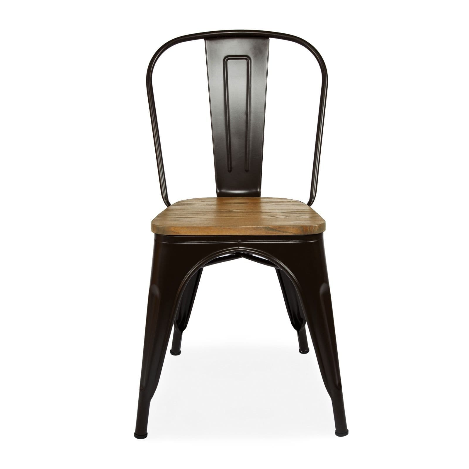 Our raw industrial look Tolix chair is one of our most sought after chairs These Galvanized steel chairs are available in 5 colour options including White Black and Brown with a wooden panel This versatile chair can be used both inside and outside match it back to a simple dining table to create a focal point for your dining space.