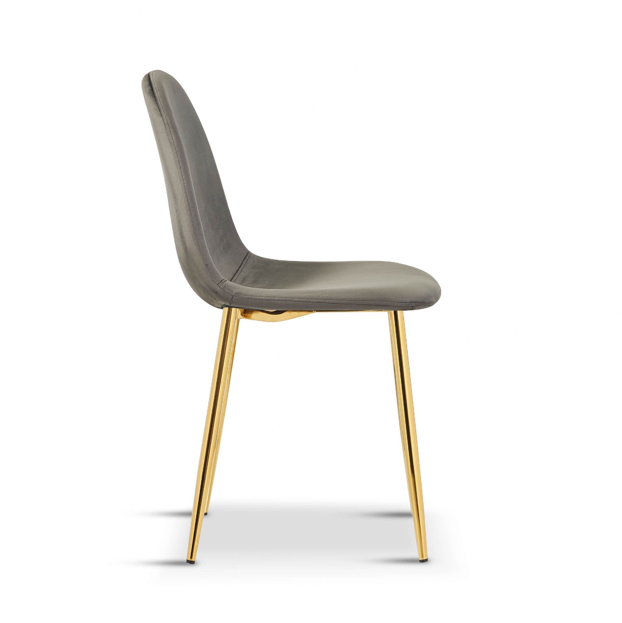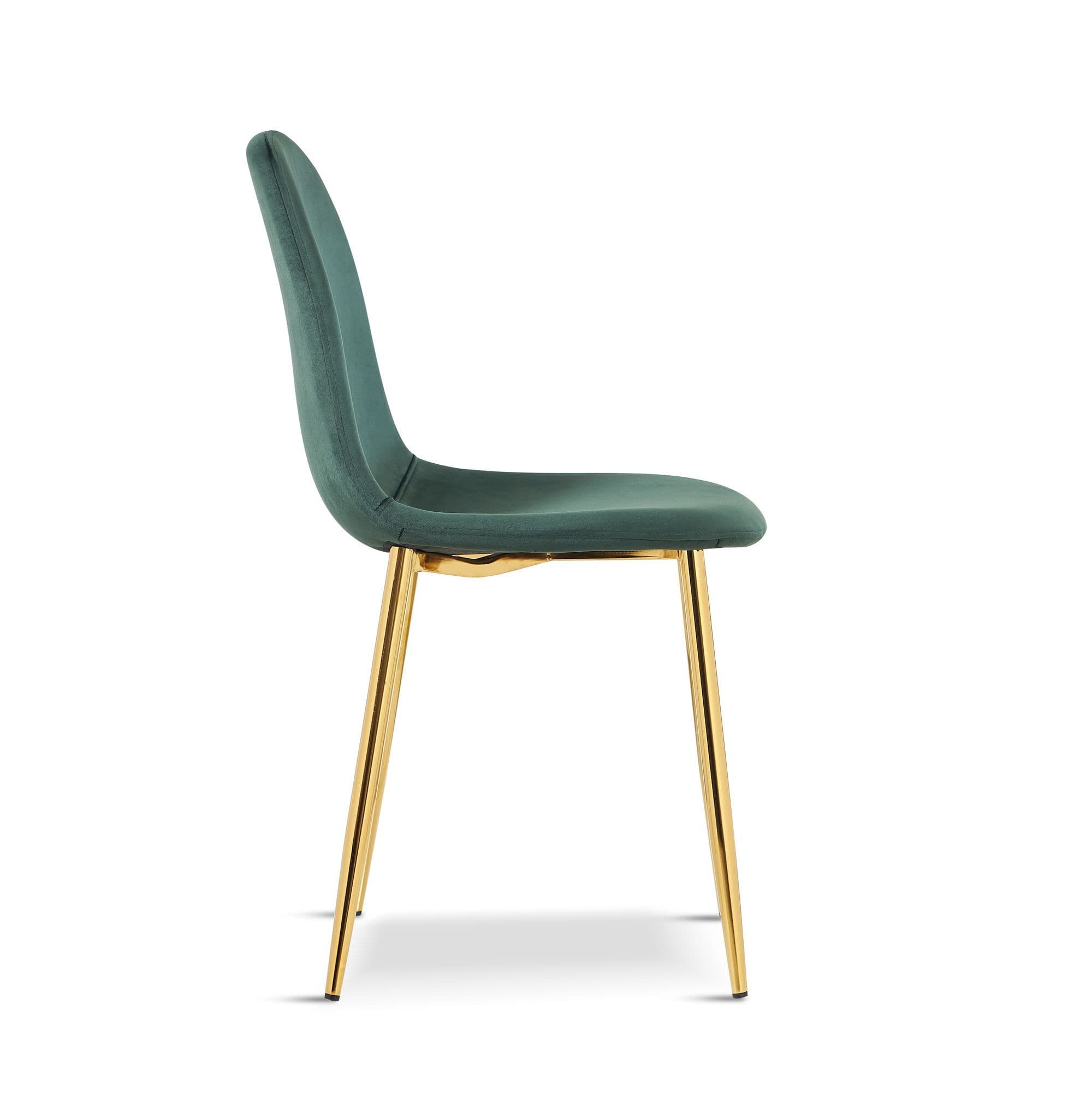Introducing the minimalist and classy upholstered dining chair a versatile addition to any rooms decor This chair seamlessly ties into any interior adding a touch of simple styling to your home Key features of the upholstered dining chair include High quality upholstery The chairs rich fabric is upholstered to the highest standard ensuring durability and comfort Rounded chair design The chairs sleek silhouette features a rounded design with added cushioning ensuring your comfort during long dinners or work sessions Thin metal legs The chairs thin metal legs add to its modern aesthetic with a gold powder coating that complements any decor Protective feet The chairs plastic feet protect your floor from scratches ensuring it stays in top condition Versatile use The chair is perfect for use with a dining table desk or in any general living space.