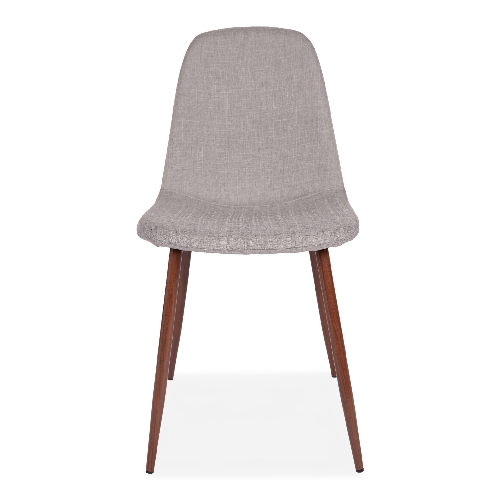 This minimalist classy upholstered dining chair seamlessly ties into any room adding a touch of simple styling to your interior The rich fabric is unholstered to the highest standard available in Brown Green and Grey So match the colour to suit your rooms style Its sleek silhouette features a rounded chair designed with added cushion for your comfort Its with thin metal legs to add to its modernity with a painted imitation beech wood effect with plastic feet to protect your floor from scratches Perfectly suited for a dining table desk or any general living space.