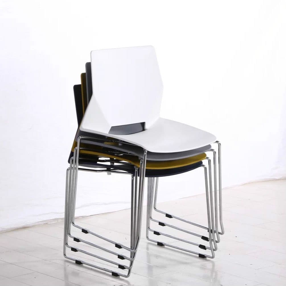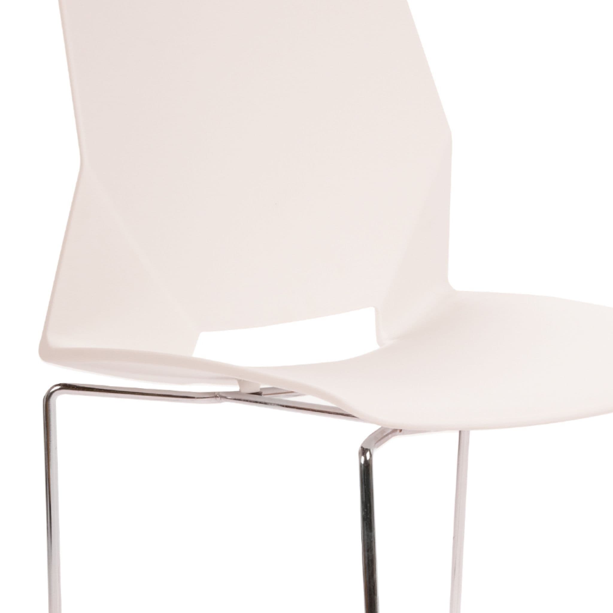Upgrade your dining or office space with our All Square Dining Chair. This retro-style chair suits modern interiors; its simple, comfort-first design is ideal for long hours at a desk or around the table. Available in black, grey, and white. A strong silver metal frame with rubber feet supports the polypropylene seat. The easy-clean surface keeps its modern look after prolonged use. Stackable for convenient storage.